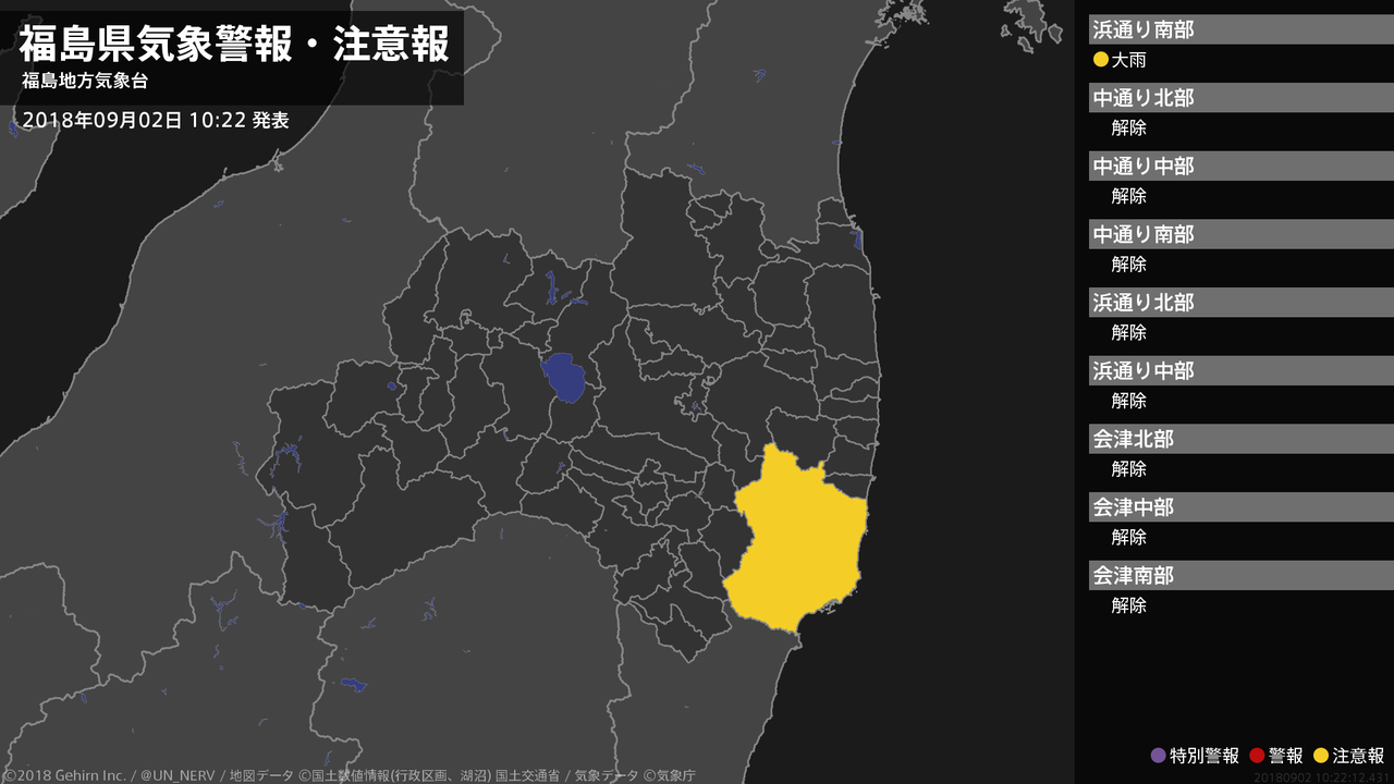 【福島県 気象警報・注意報 2018年09月02日 10:22】