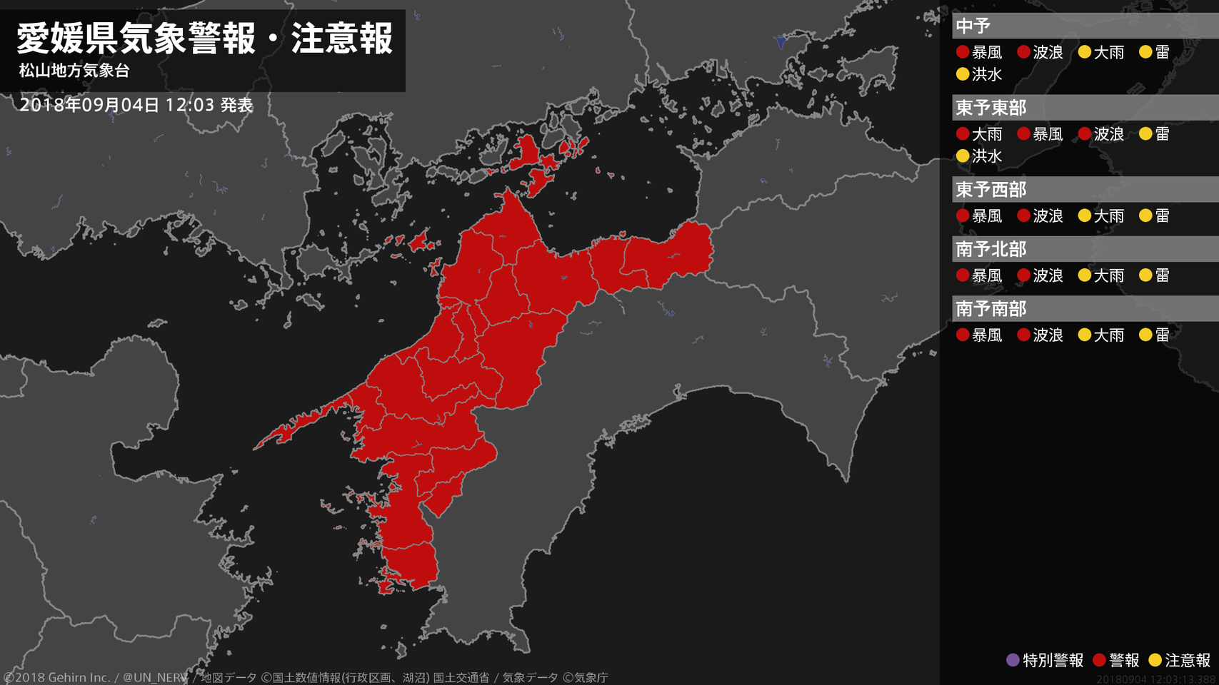 台風第21号の中心は、4日12時頃に徳島県南部に上陸しました。