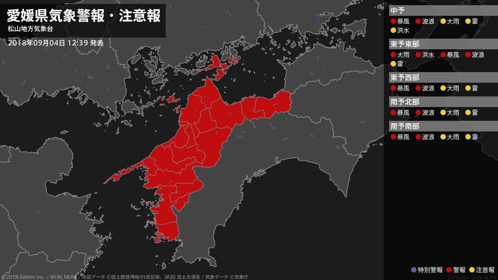 【愛媛県 気象警報 2018年09月04日 12:39】
