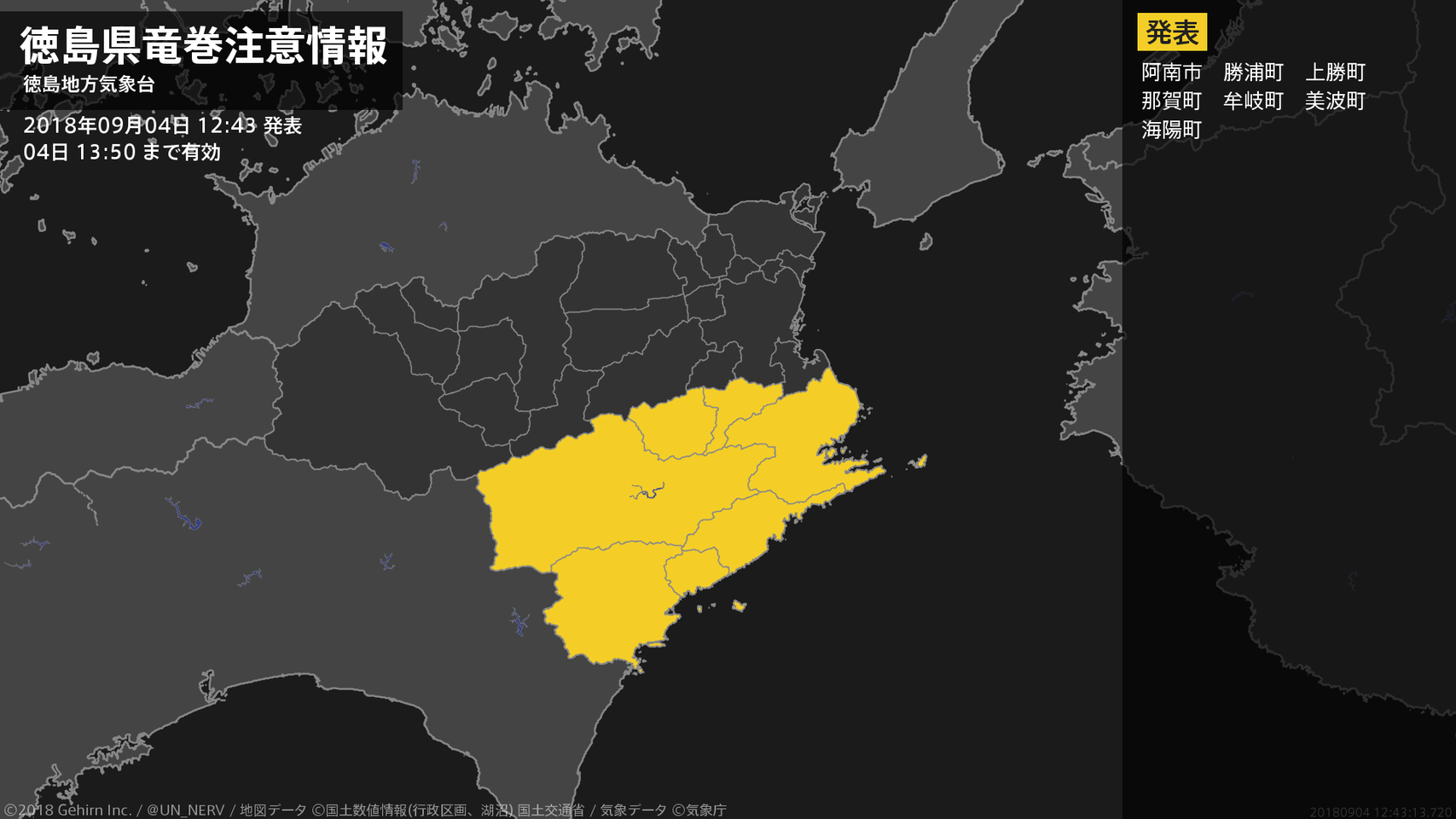 【徳島県 土砂災害警戒情報 2018年09月04日 12:30】
