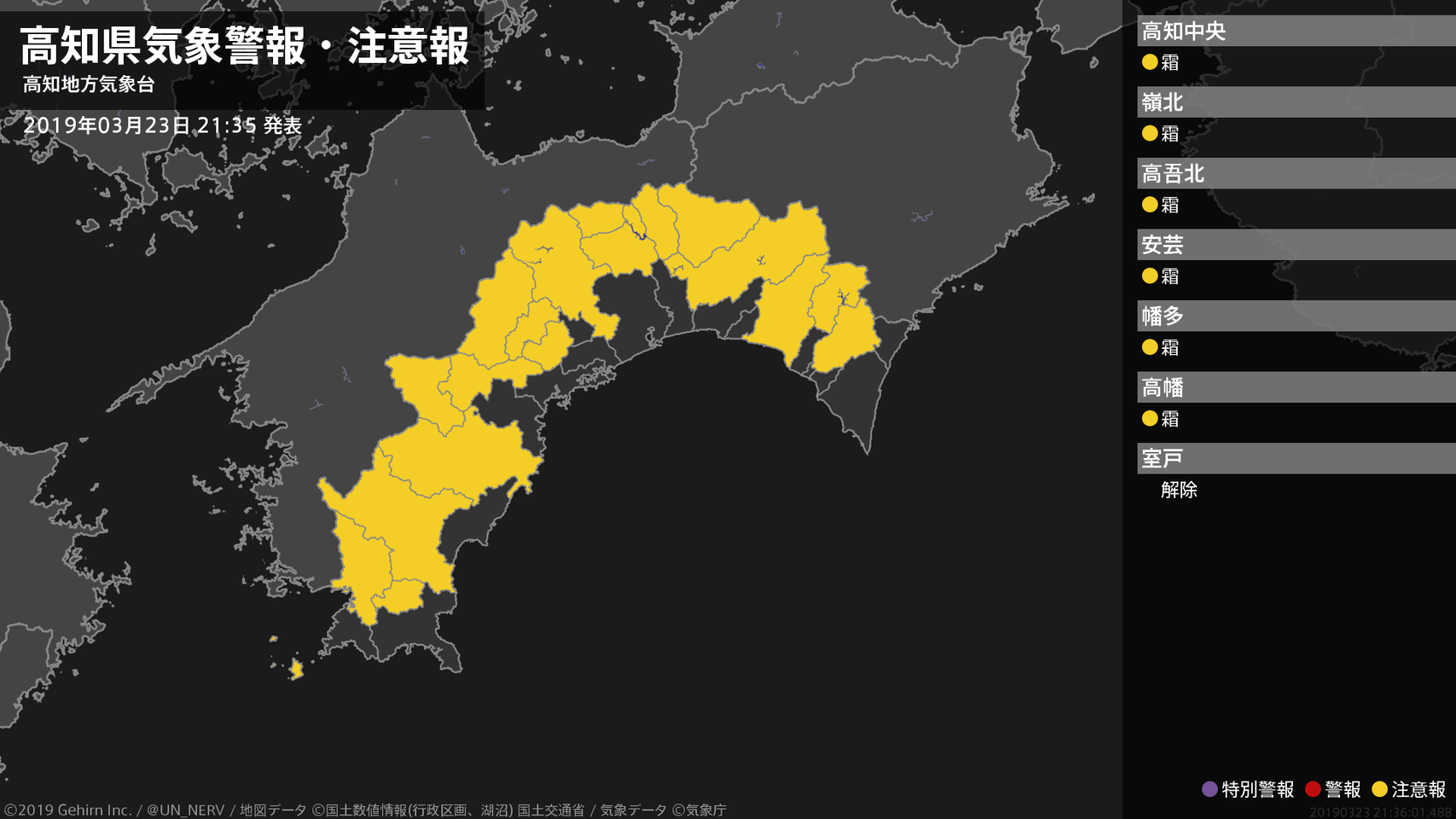 【高知県 気象警報・注意報 2019年03月23日 21:36】