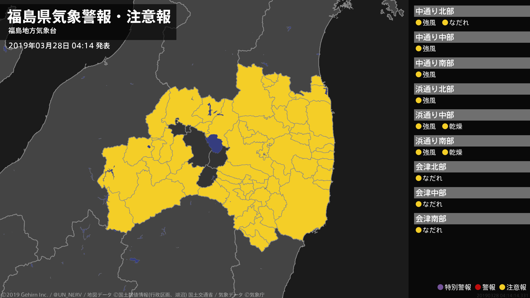 【福島県 気象警報・注意報 2019年03月28日 04:14】