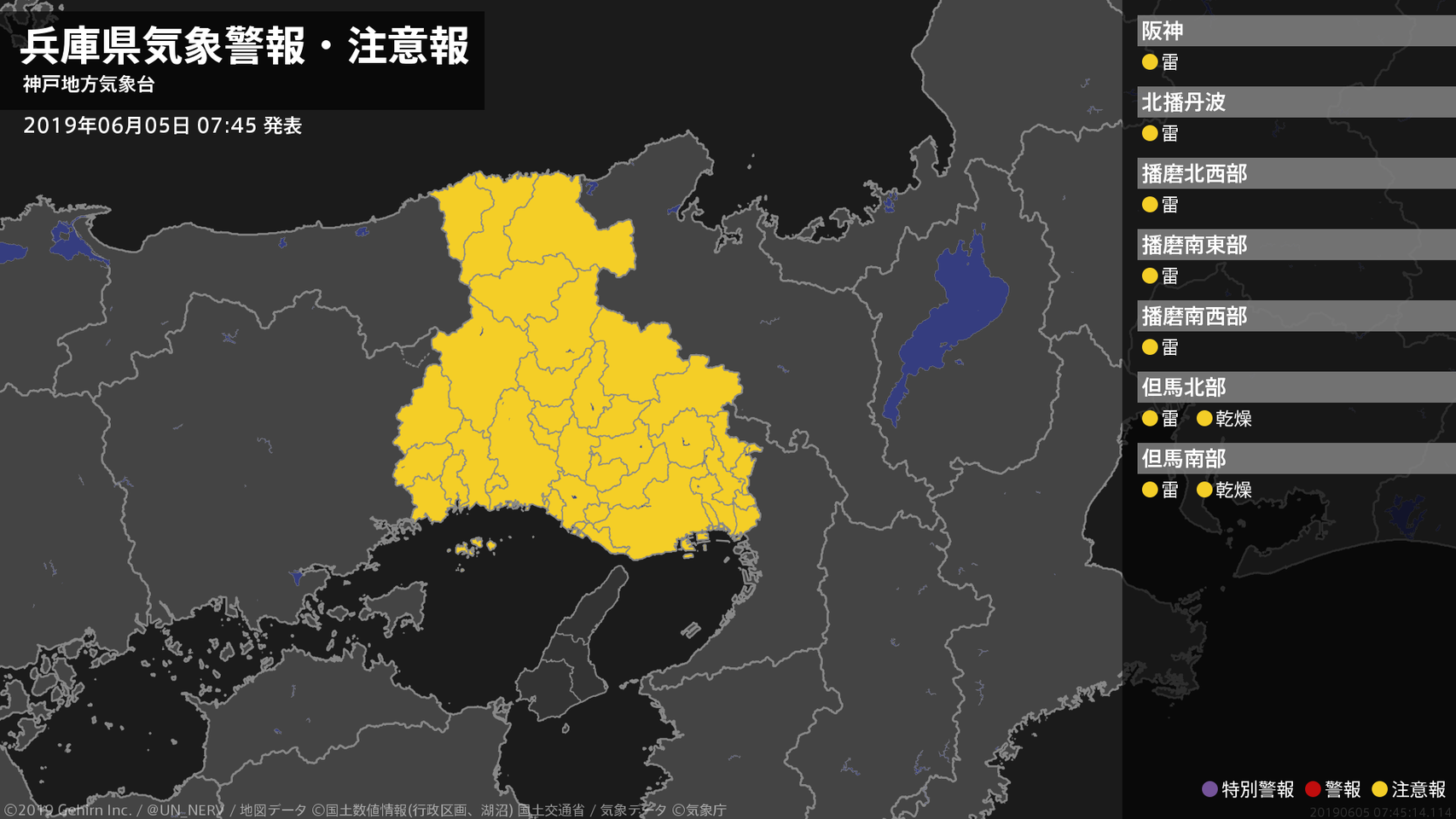 【兵庫県 気象警報・注意報 2019年06月05日 07:45】