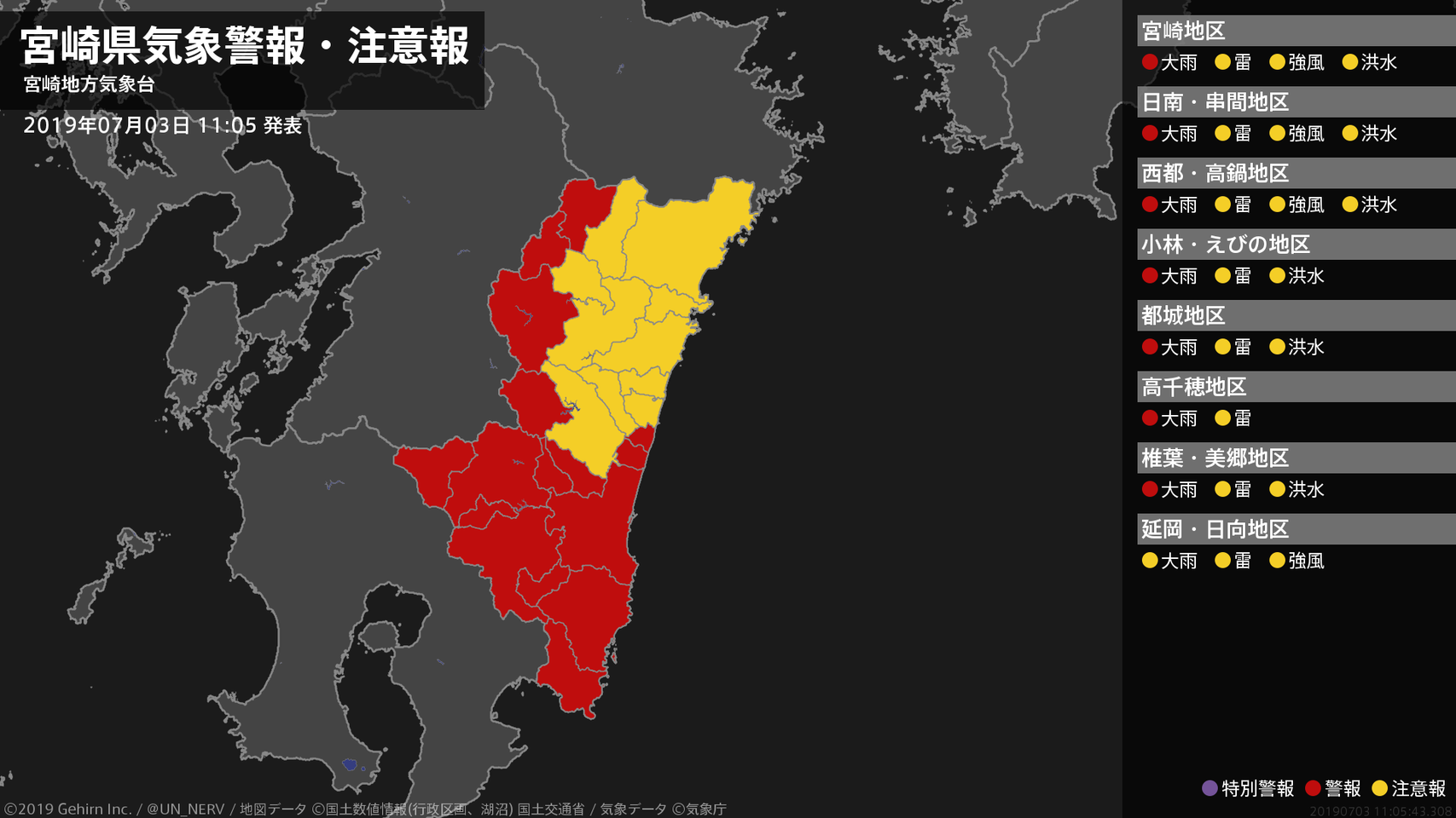鹿児島県霧島市は、大雨で土砂災害が発生するおそれが高まっているとして、市内全域の6万1395世帯、12万5868人に対して出していた避難勧告を、午前11時10分、避難指示に切り替えました。
