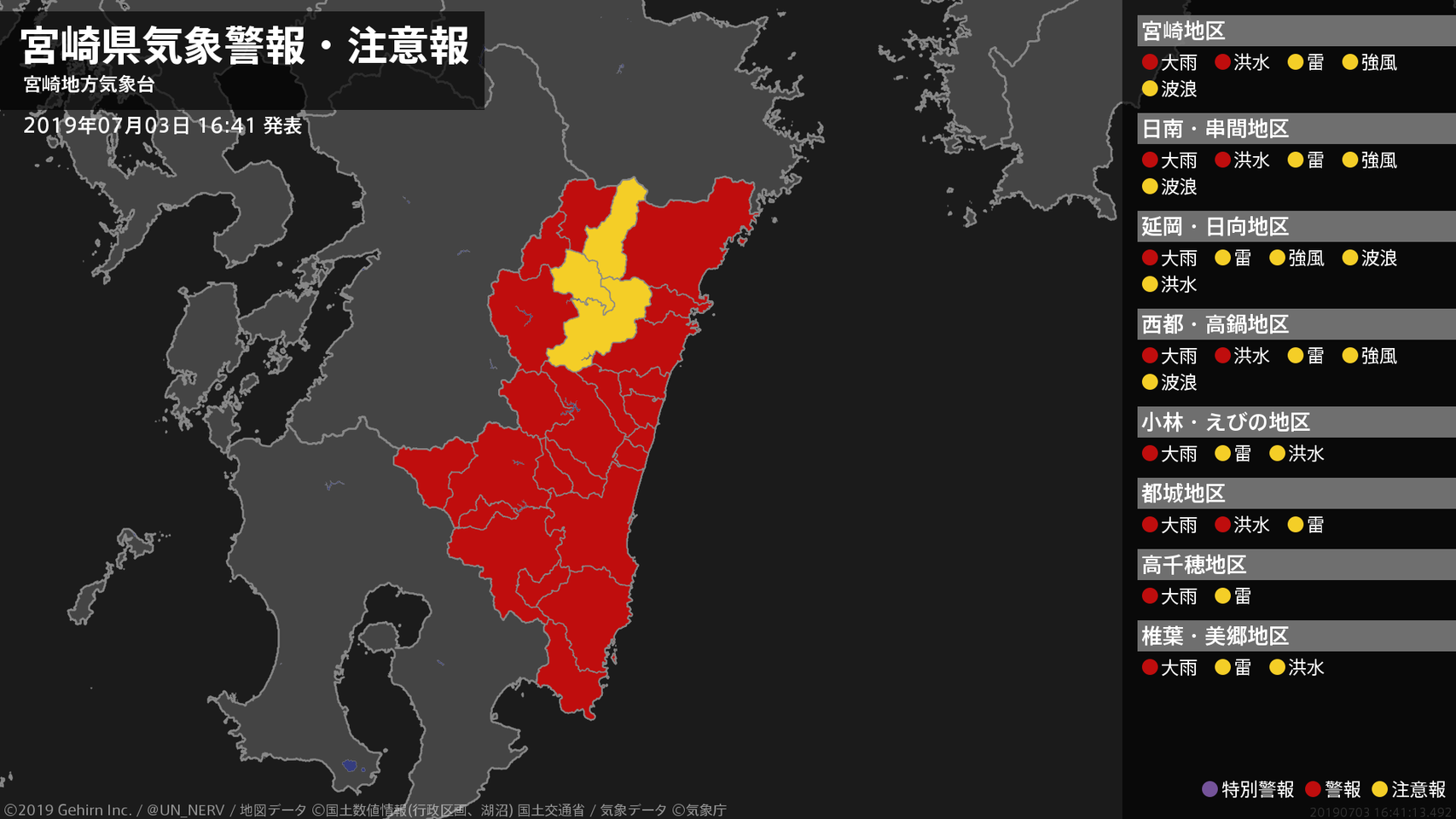 【大雨と雷及び突風に関する全般気象情報 2019年07月03日 16:27】