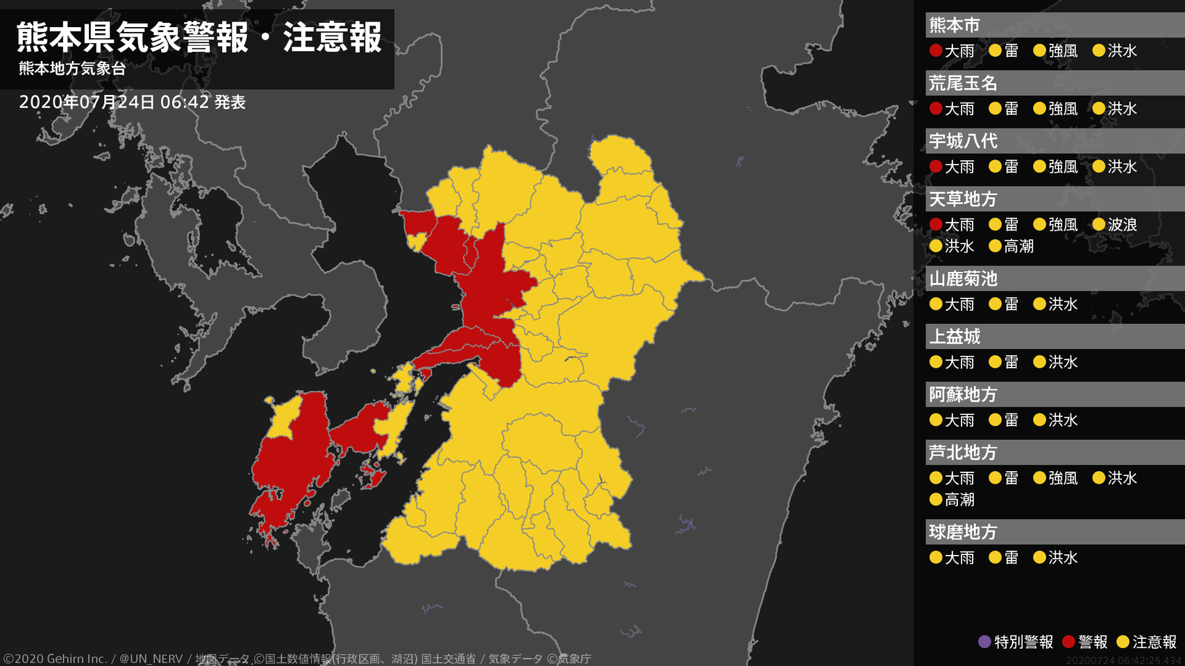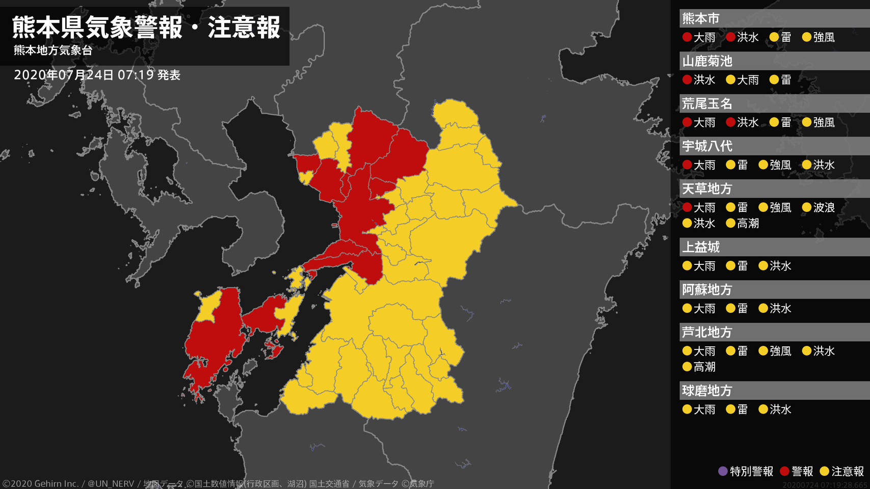熊本県によりますと、この大雨で熊本県の井芹川は午前6時50分、熊本市の池上観測所で「氾濫危険水位」を超えました。