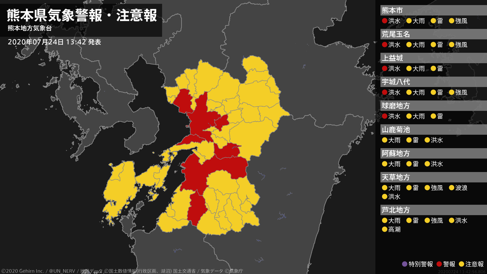 【熊本県 気象警報 2020年07月24日 13:42】