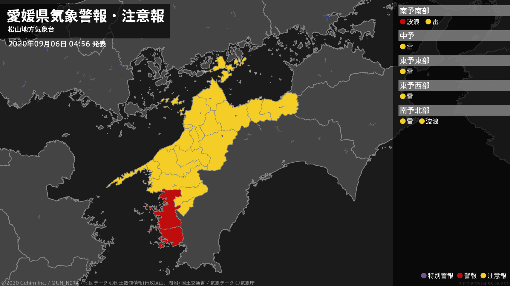 【愛媛県 気象警報・注意報 2020年09月06日 04:56】