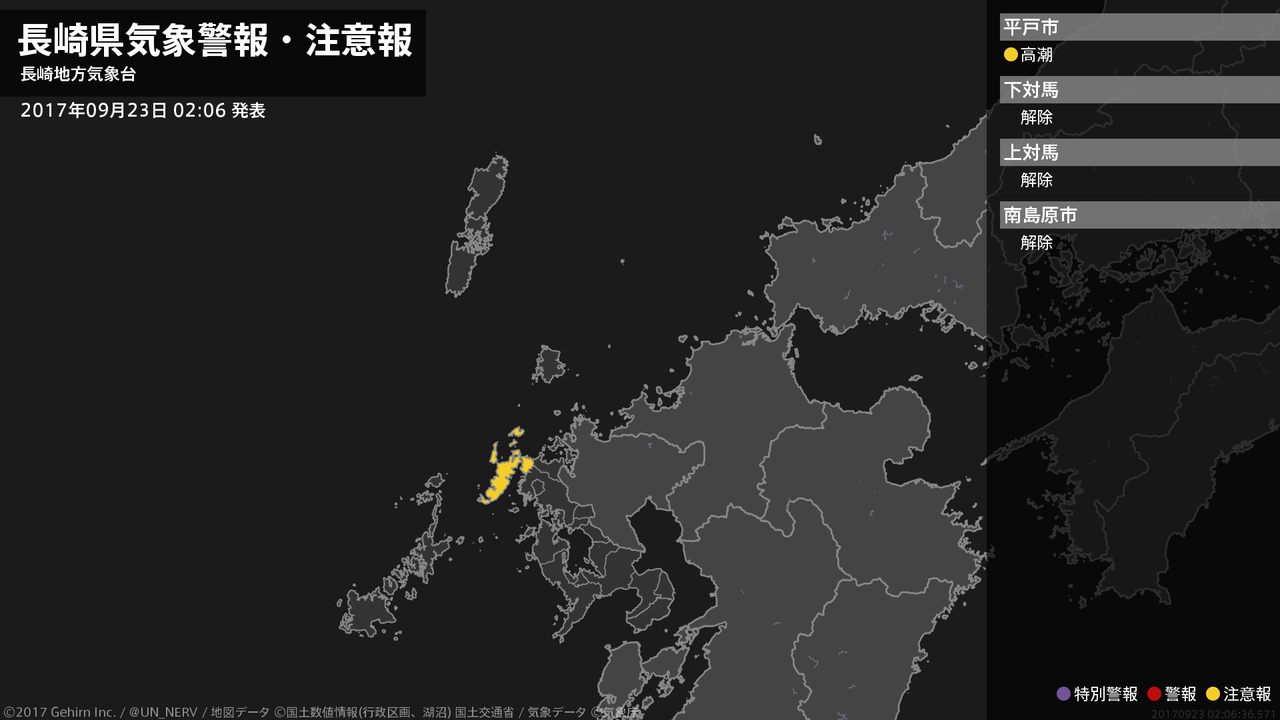 【長崎県 気象警報・注意報 2017年09月23日 02:06】