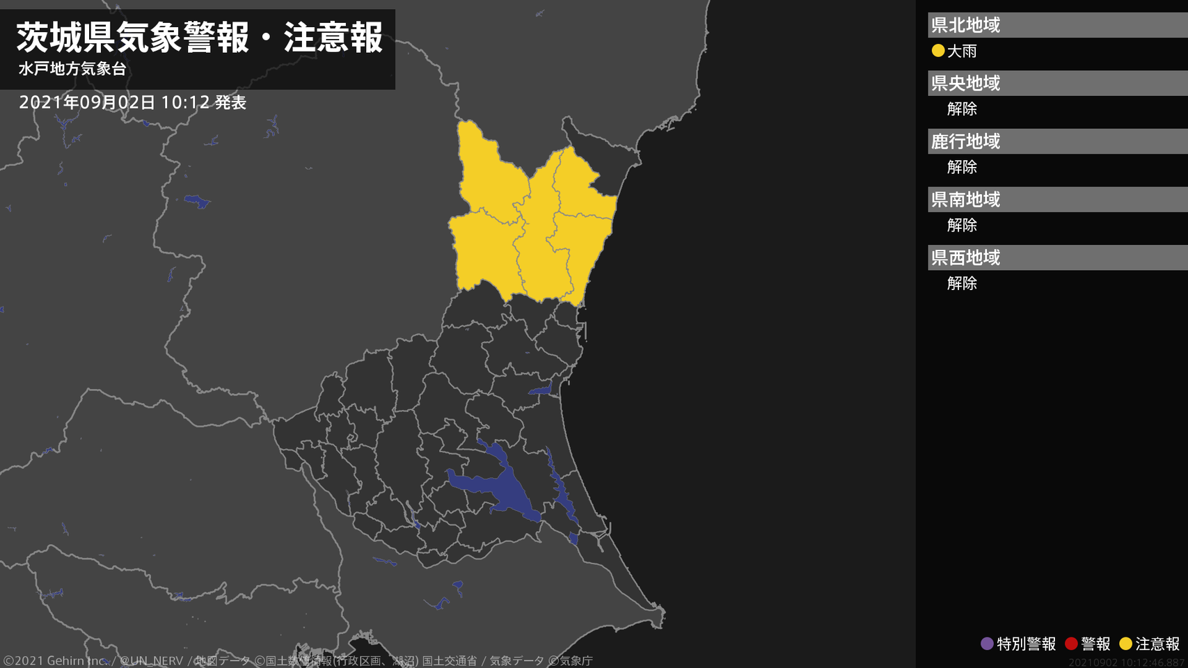 【茨城県 気象警報・注意報 2021年09月02日 10:12】北部では、2日夜遅くまで土砂災害に注意してください。#気象警報注意報 #茨城県