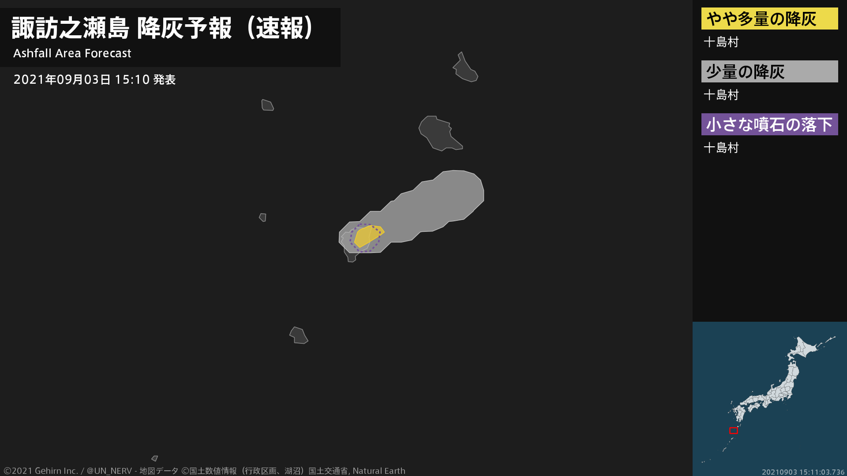 【諏訪之瀬島 噴火に関する火山観測報 2021年09月03日 15:09】