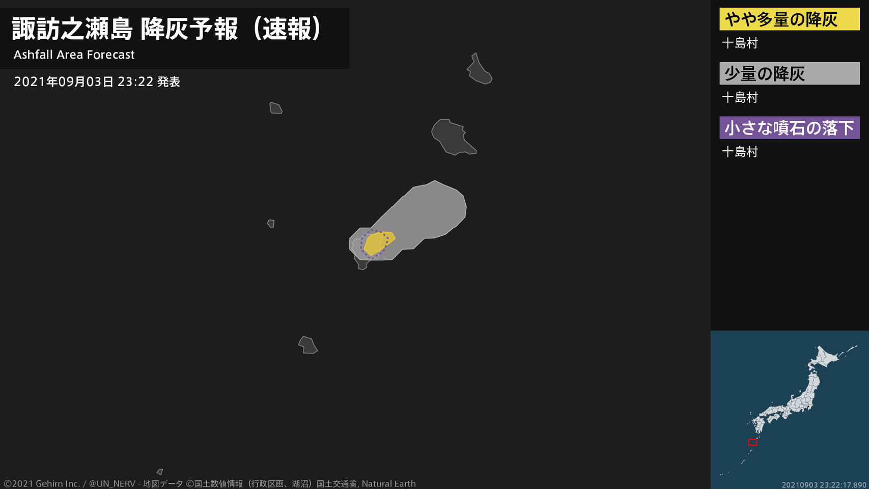 【諏訪之瀬島 噴火に関する火山観測報 2021年09月03日 23:21】