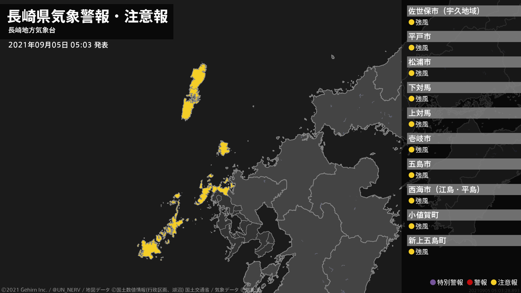 【長崎県 気象警報・注意報 2021年09月05日 05:03】
