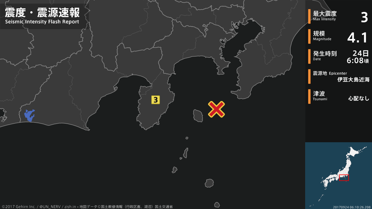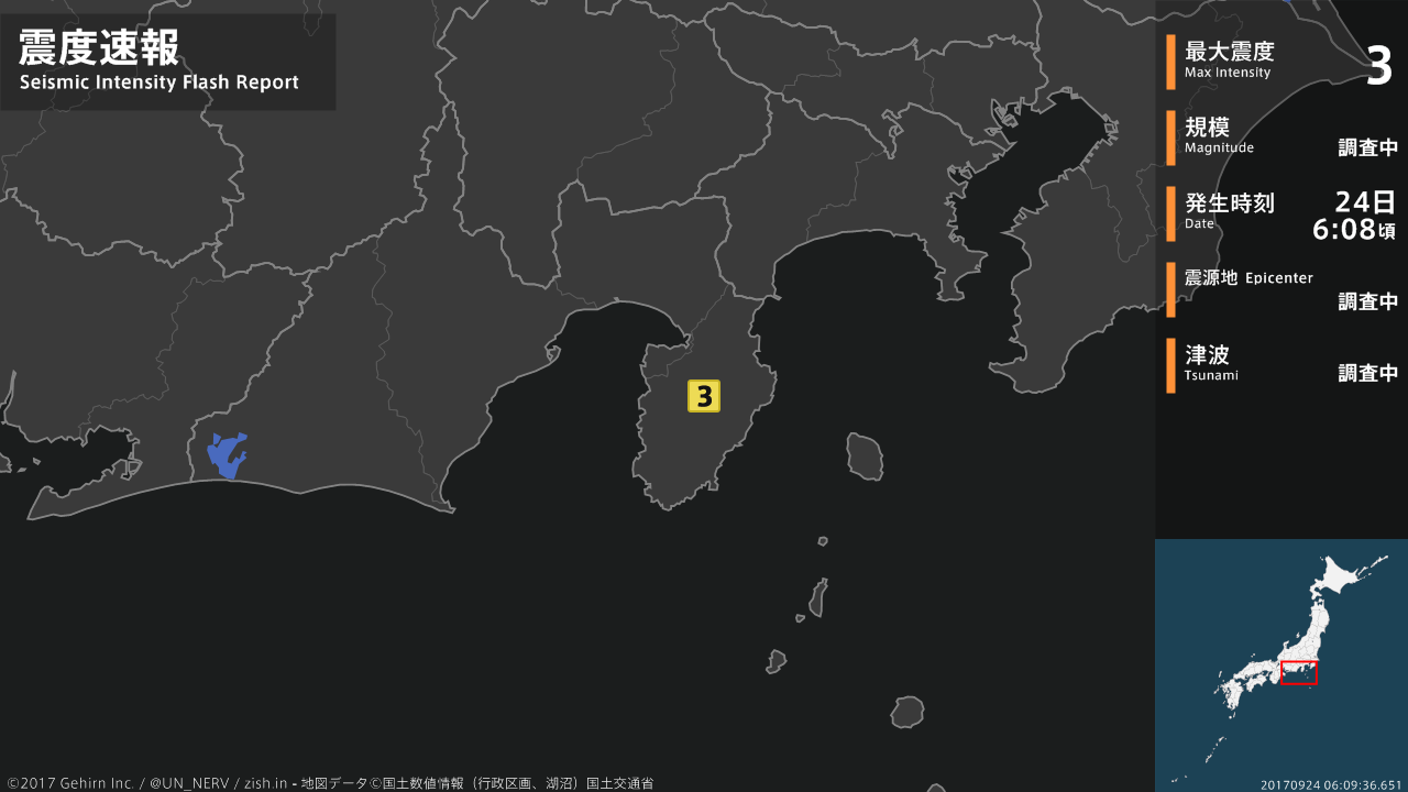 【緊急地震速報 第3報 2017年9月24日】