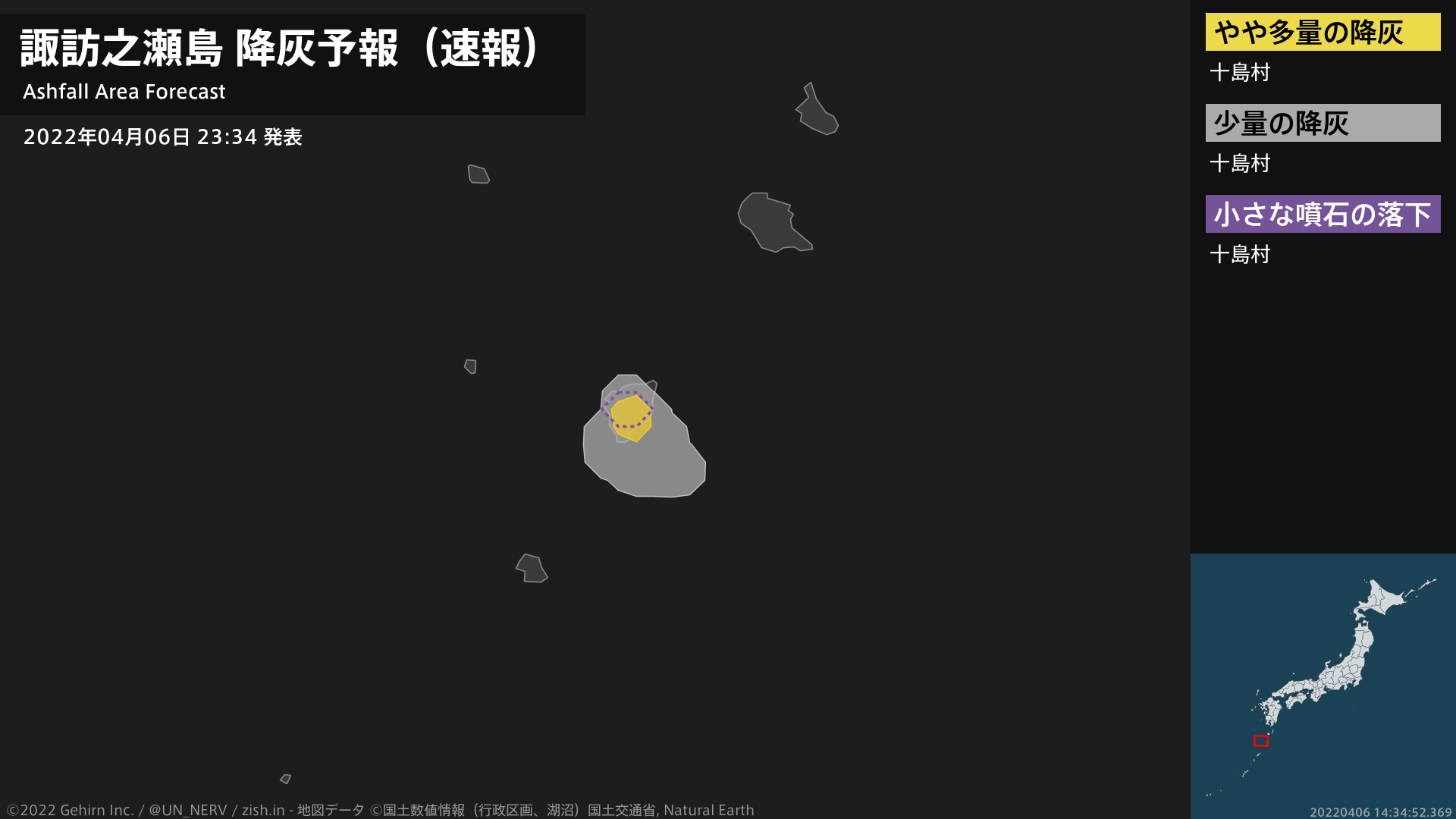 【諏訪之瀬島 噴火に関する火山観測報 2022年04月06日 23:33】