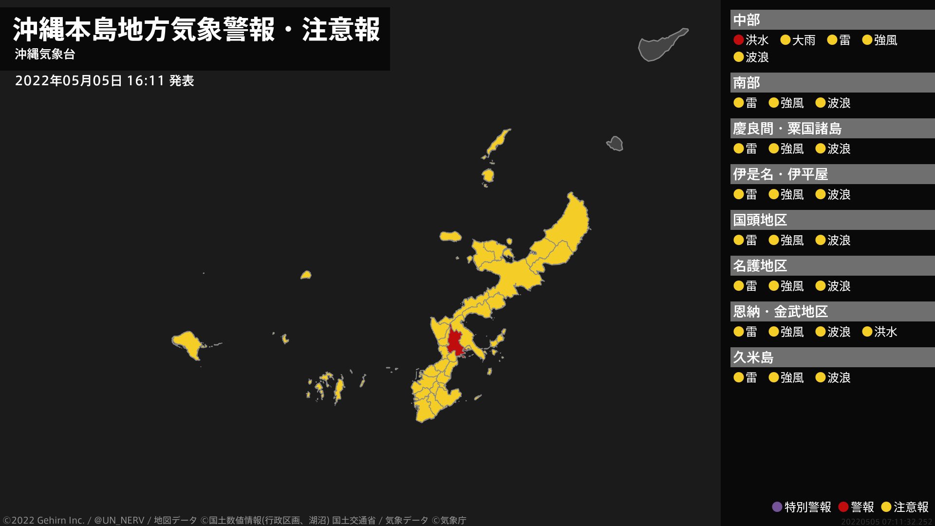 【沖縄本島地方 気象警報 2022年05月05日 16:11】