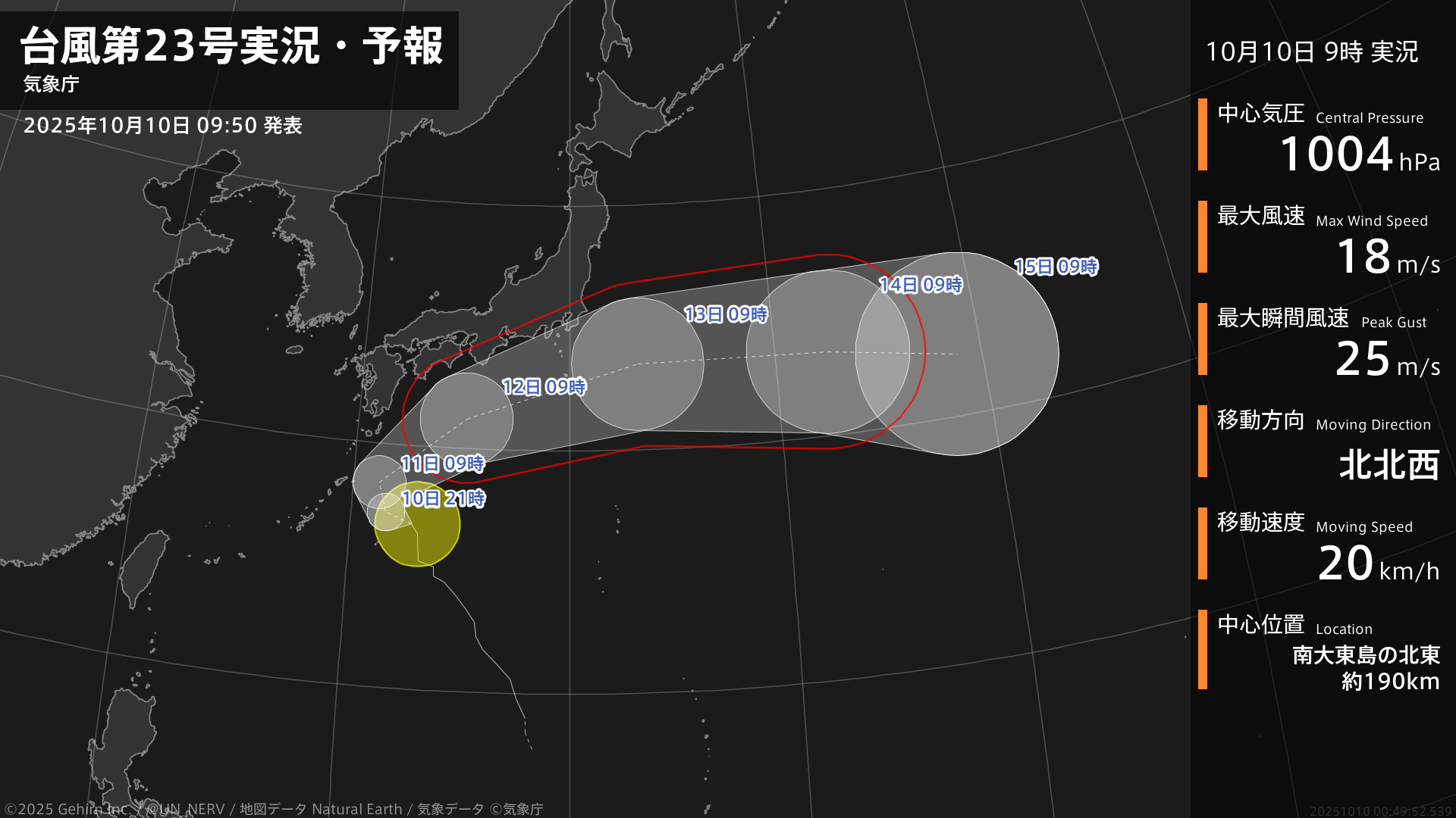 【台風第23号実況・予報 2025年10月10日 09:49】