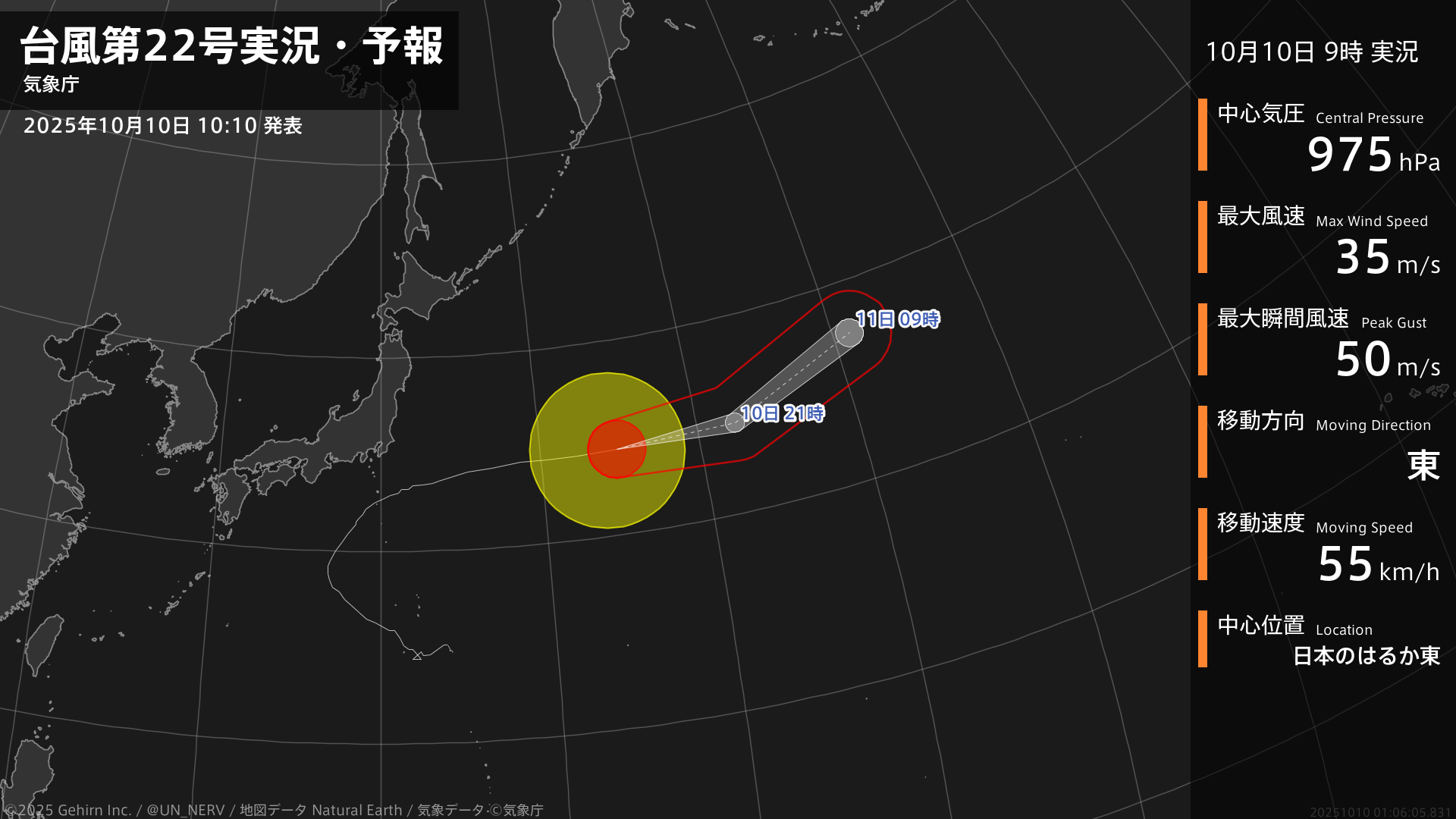 【台風第22号実況・予報 2025年10月10日 10:06】