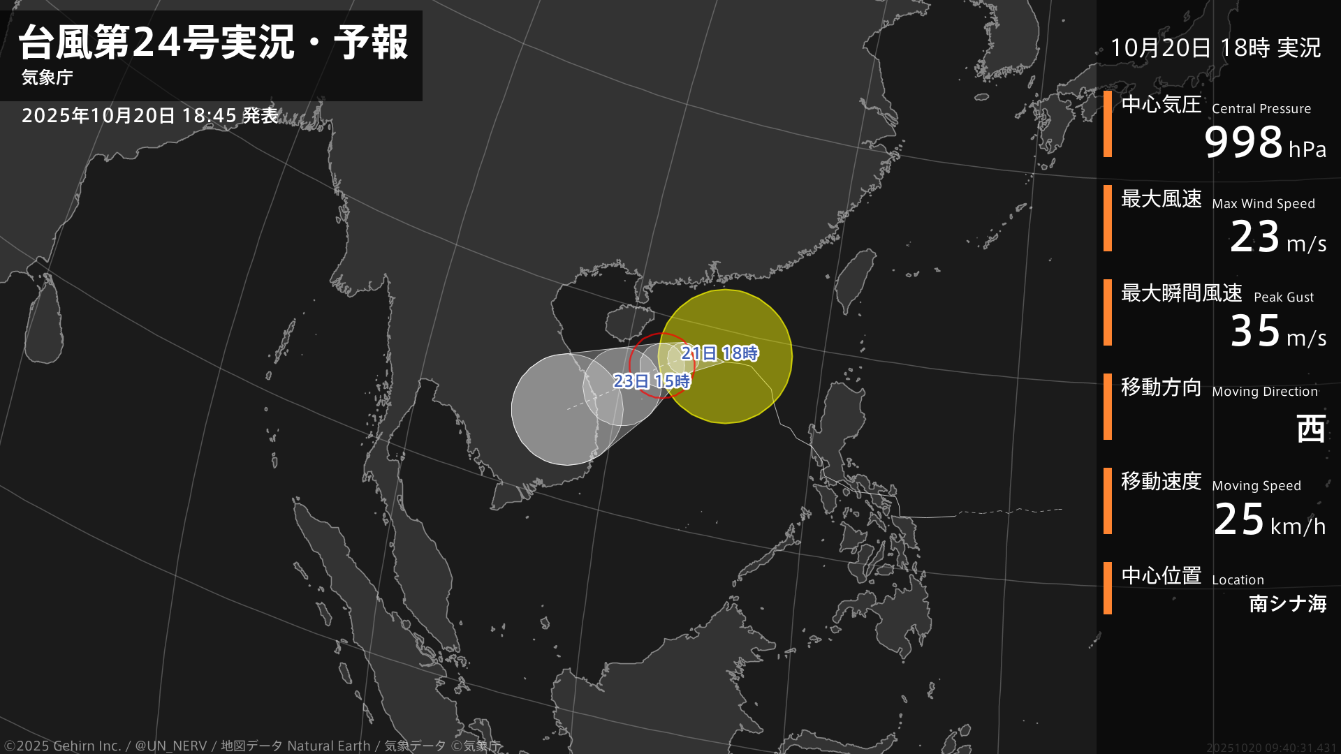 【台風第24号実況・予報 2025年10月20日 18:40】