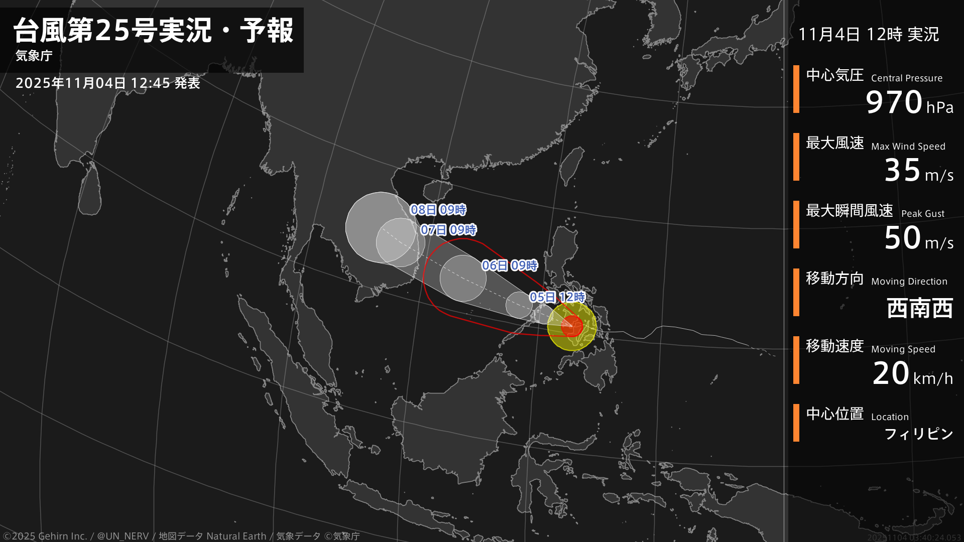 【台風第25号実況・予報 2025年11月04日 12:40】