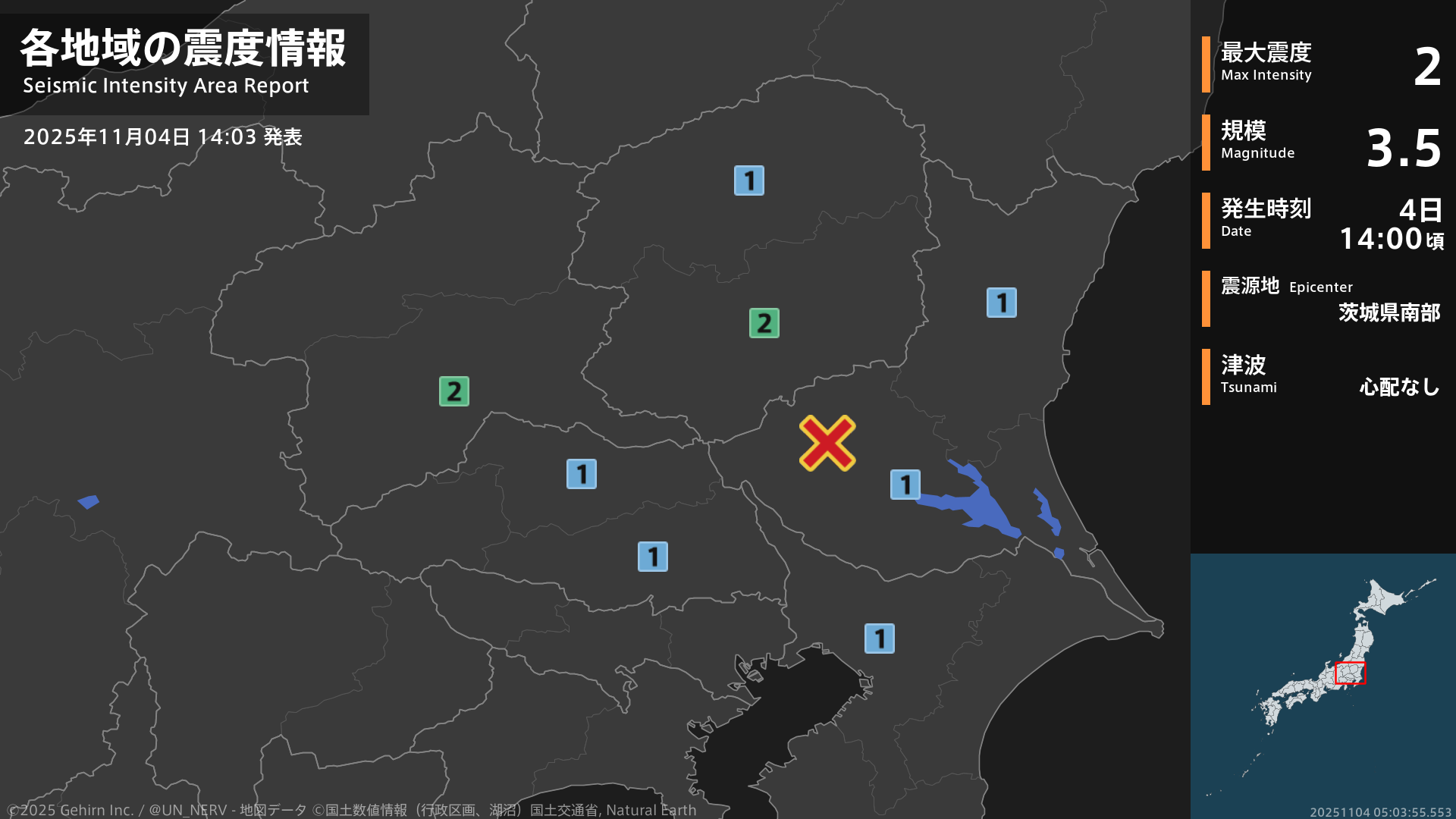 【地震情報 2025年11月4日】