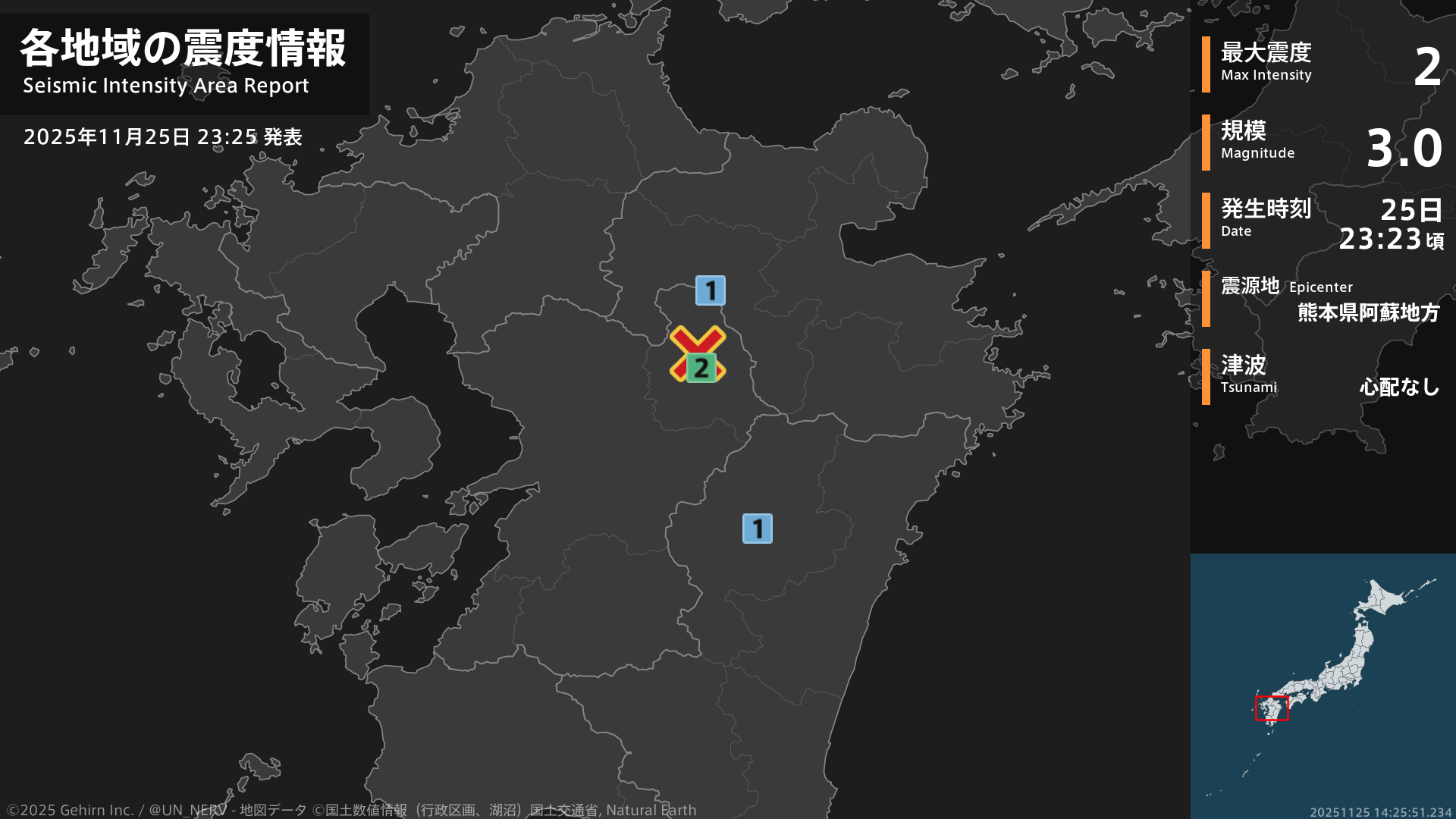 【緊急地震速報 第1報 2025年11月25日】