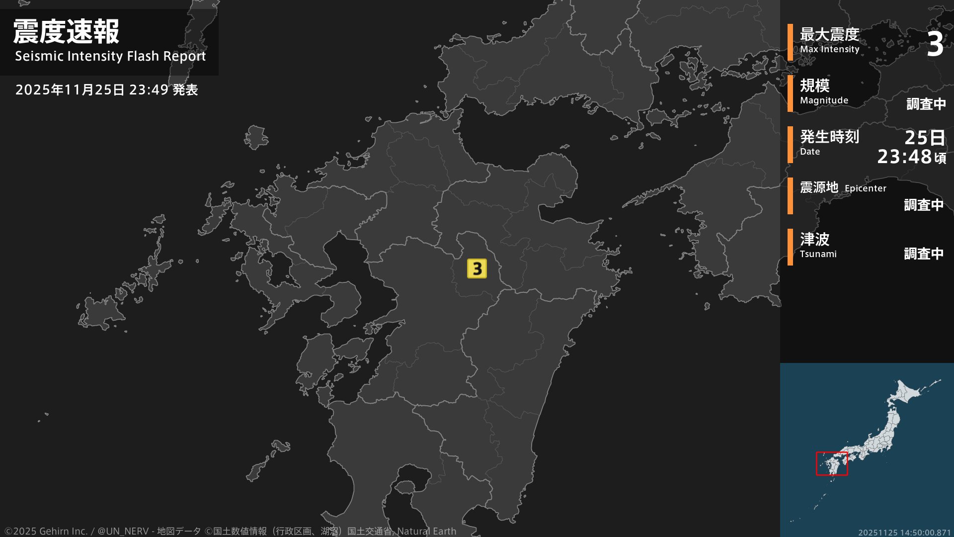 【緊急地震速報 第3報 2025年11月25日】