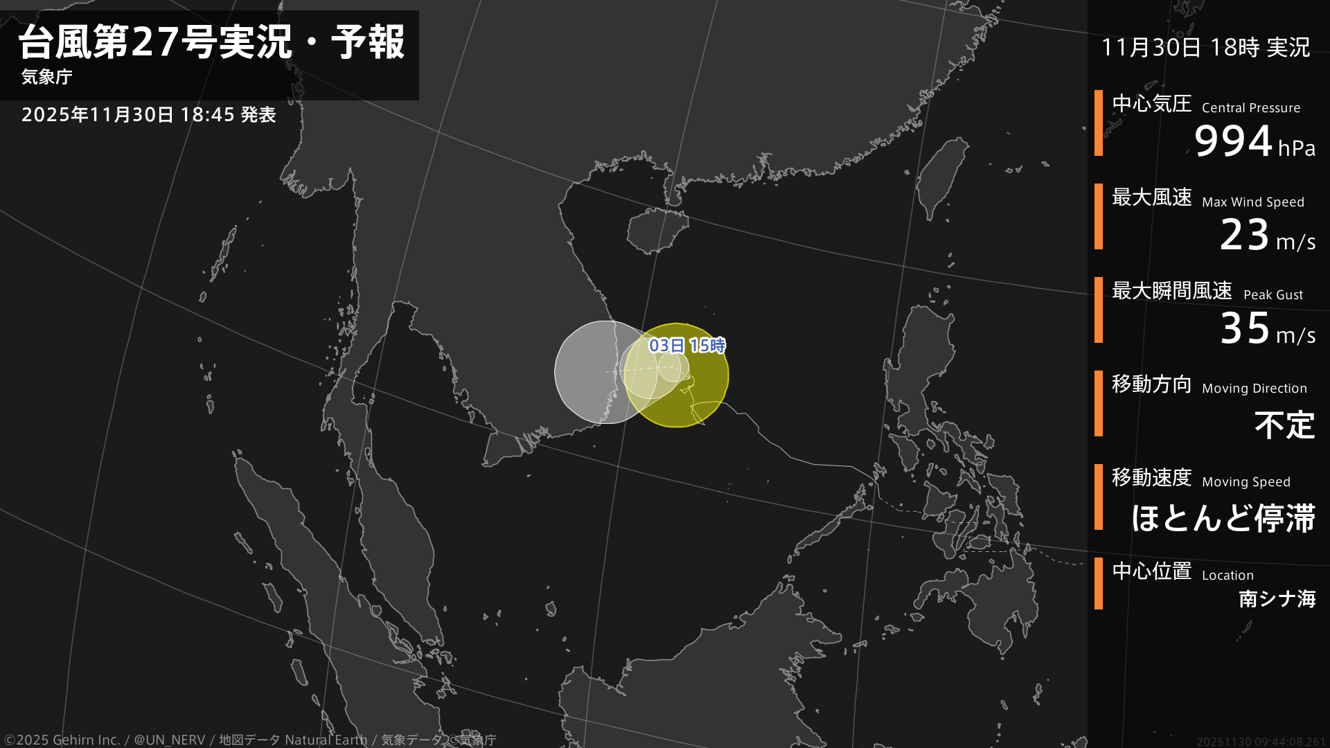【台風第27号実況・予報 2025年11月30日 18:44】
