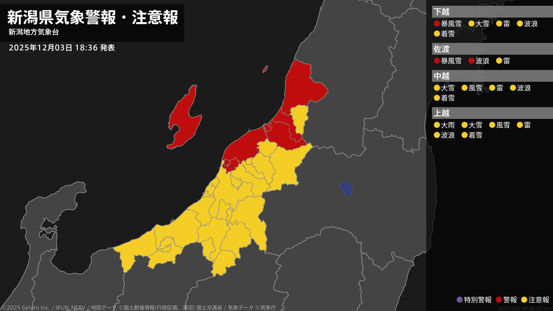 【新潟県 気象警報・注意報 2025年12月03日 18:36】