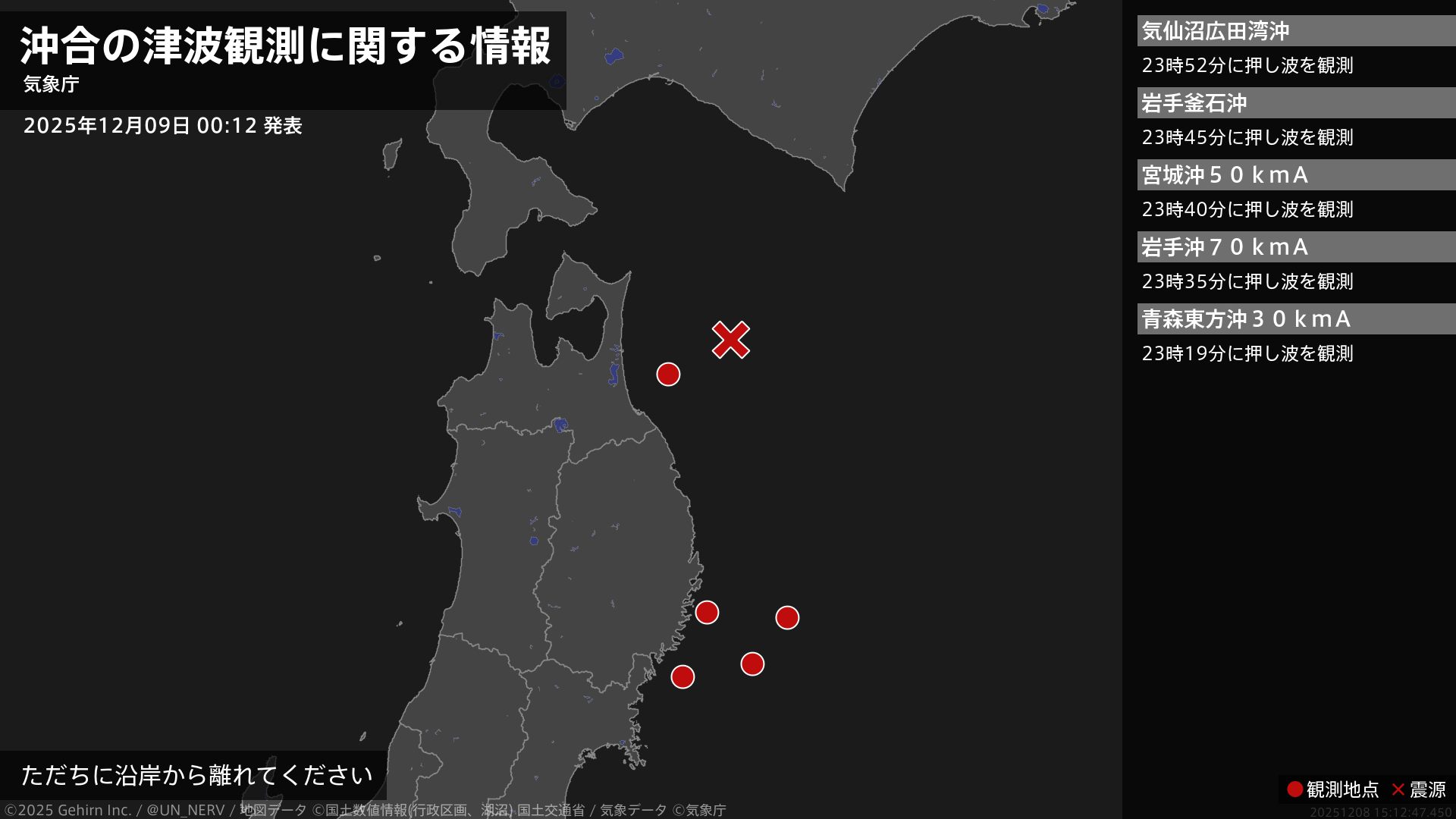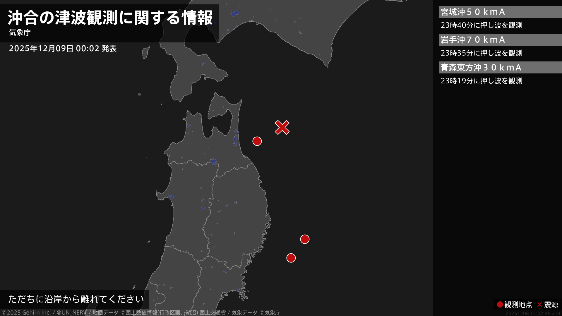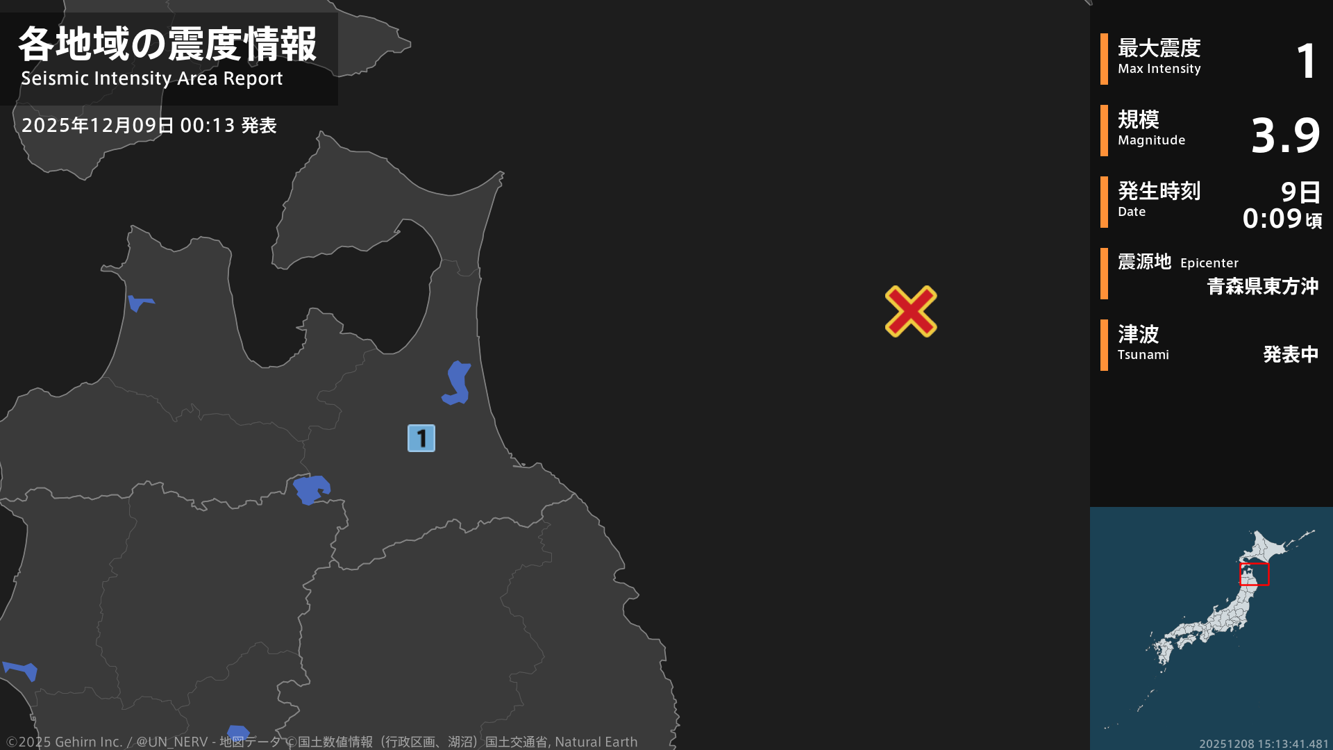 0時57分頃、青森県東方沖を震源とする地震がありました。今後の情報に注意してください。