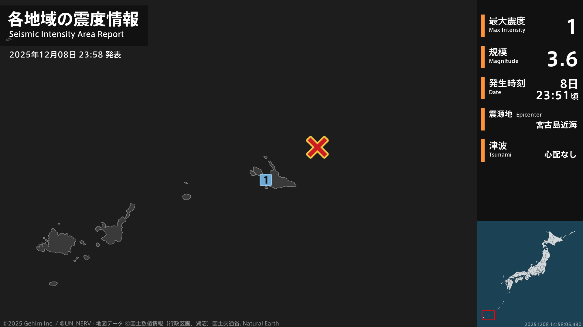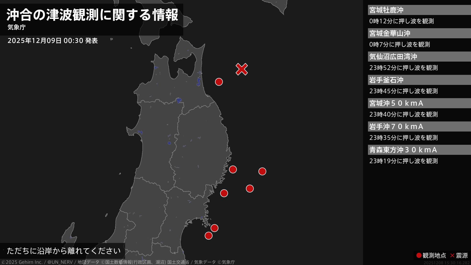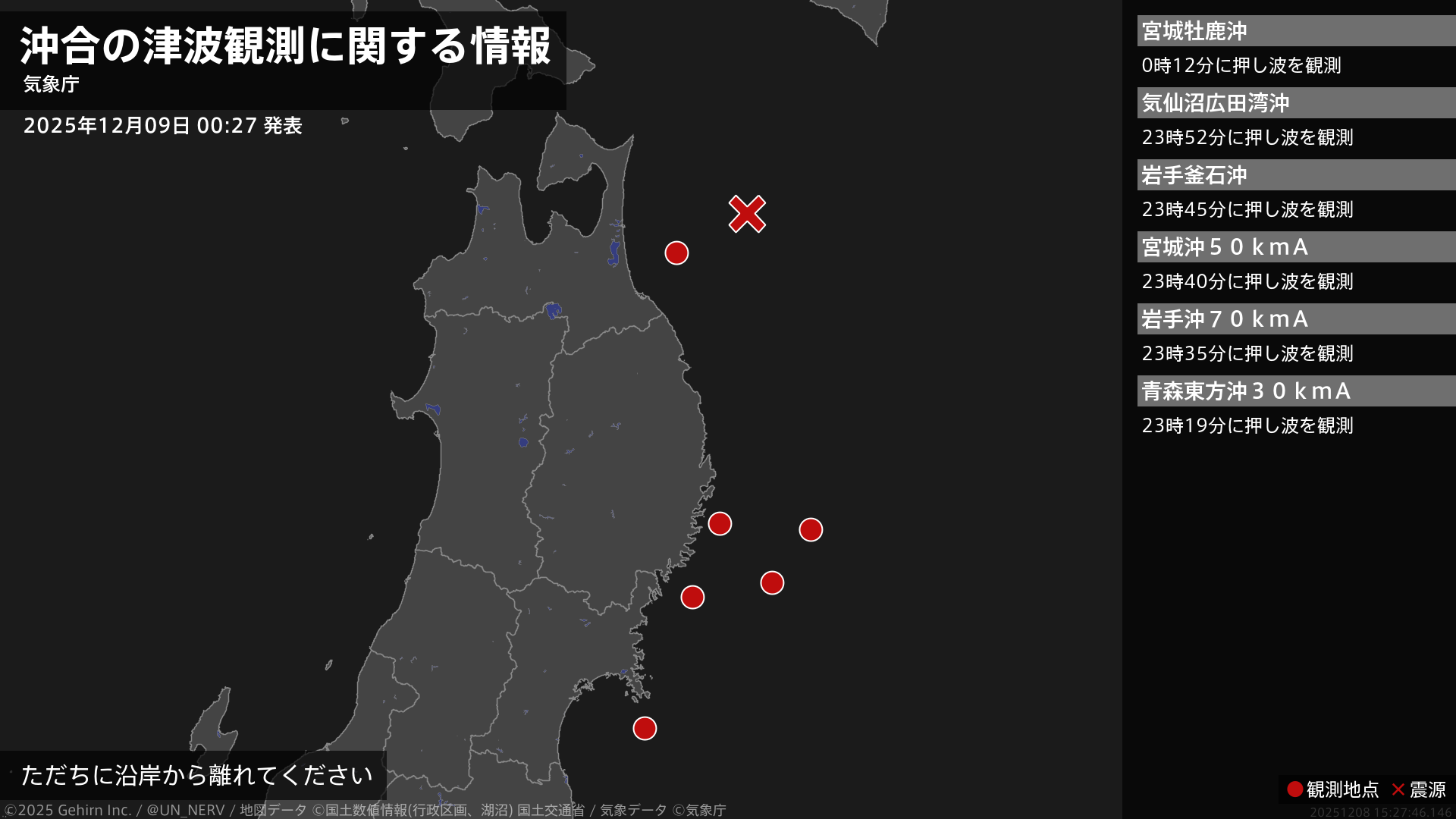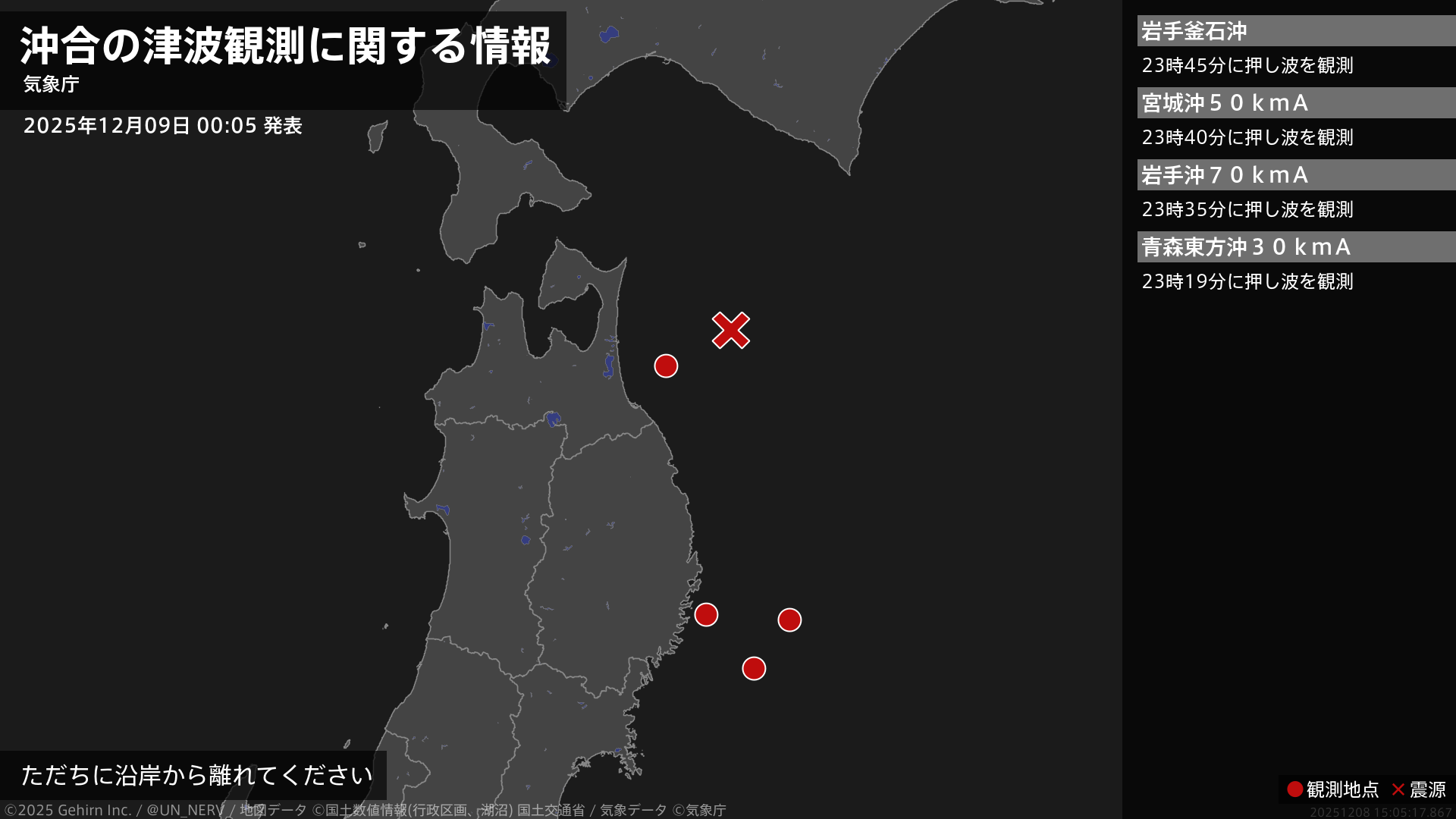 0時57分頃、青森県東方沖を震源とする地震がありました。今後の情報に注意してください。
