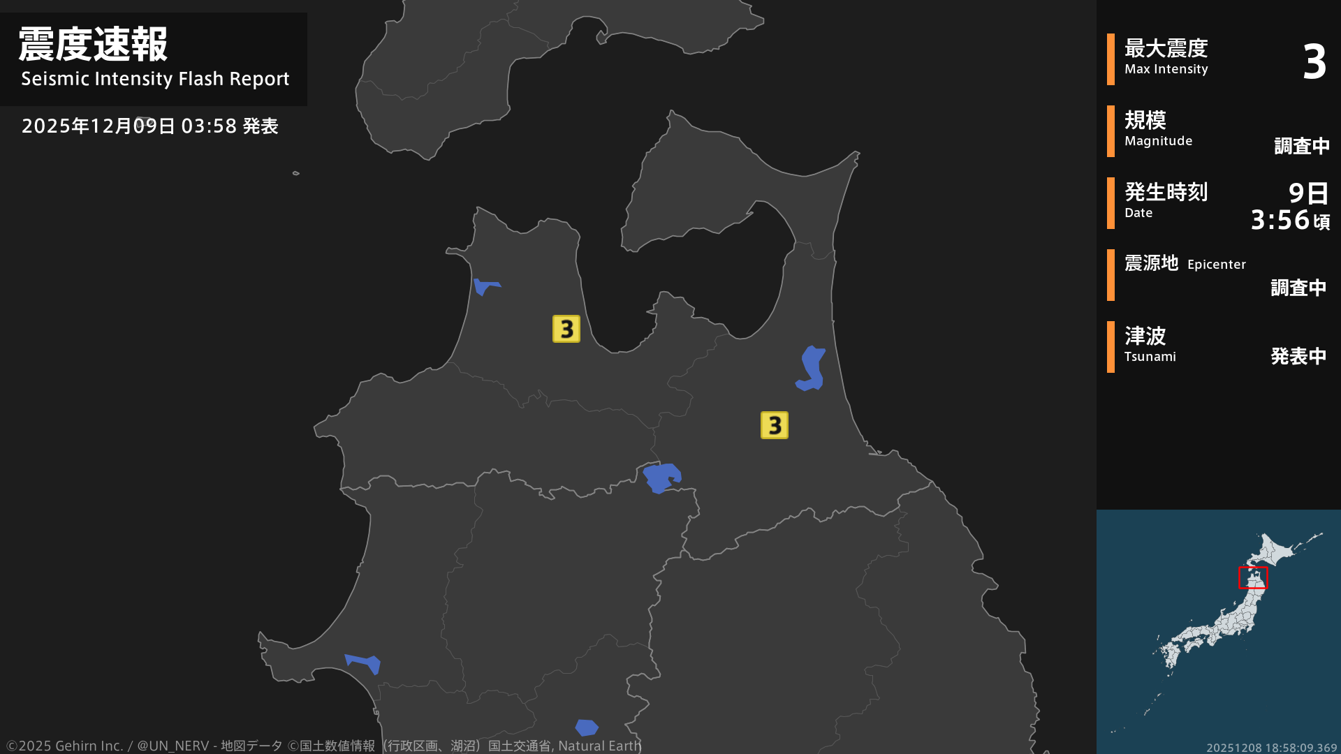 【緊急地震速報 第3報 2025年12月9日】