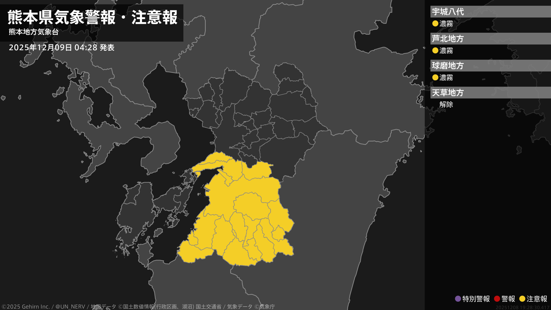 【熊本県 気象警報・注意報 2025年12月09日 04:28】