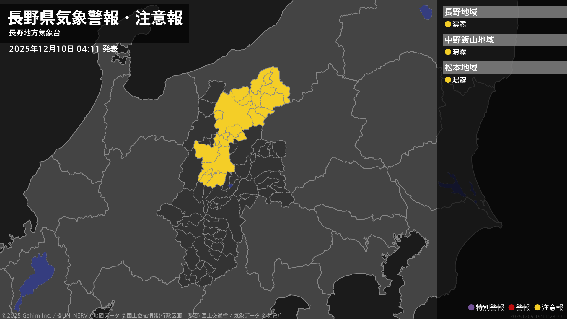【長野県 気象警報・注意報 2025年12月10日 04:11】