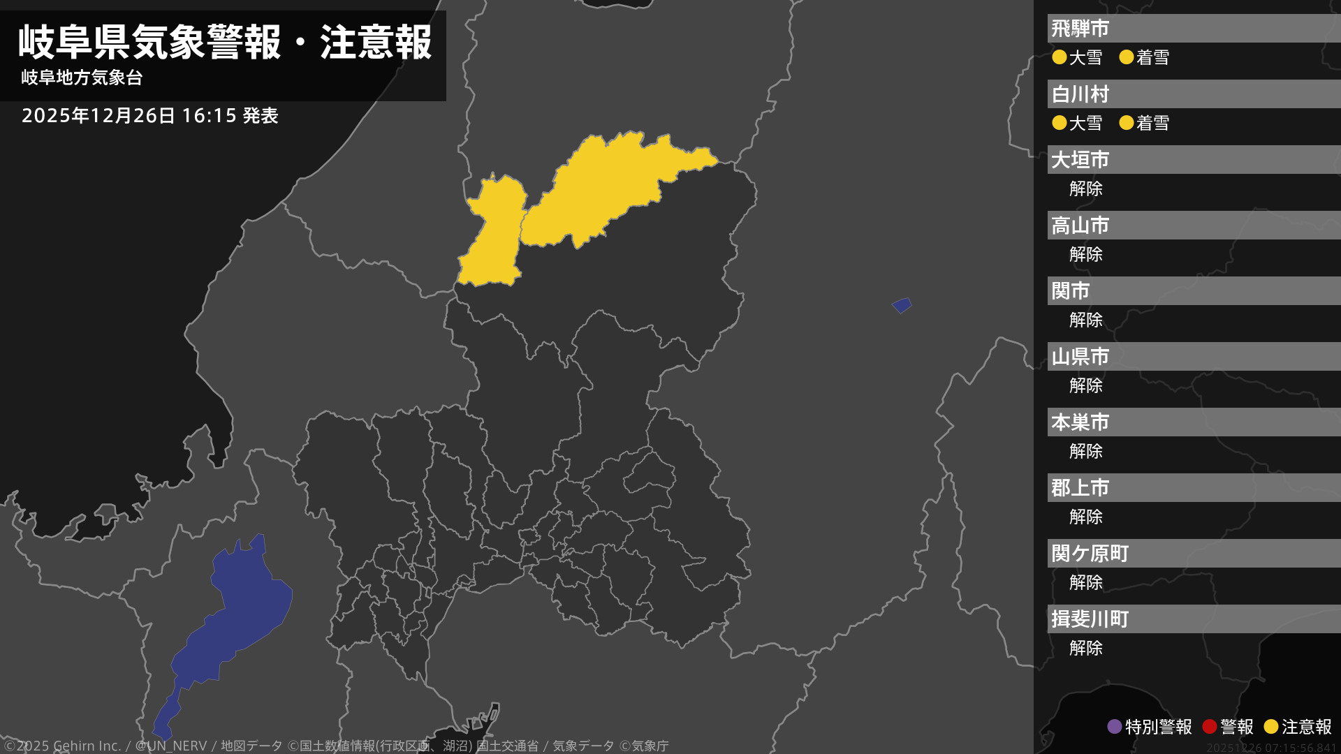 【暴風雪と高波及び大雪に関する全般気象情報 2025年12月26日 16:22】