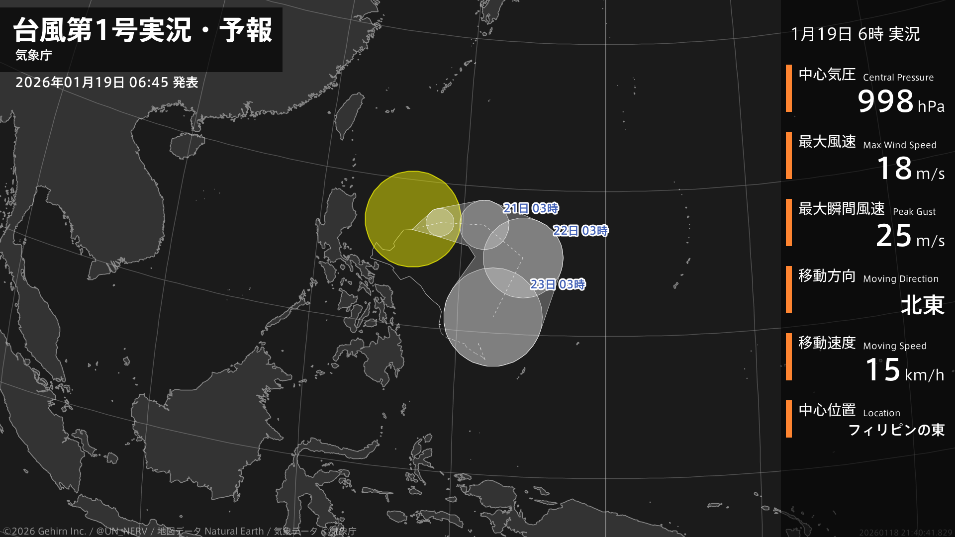 【台風第1号実況・予報 2026年01月19日 06:40】