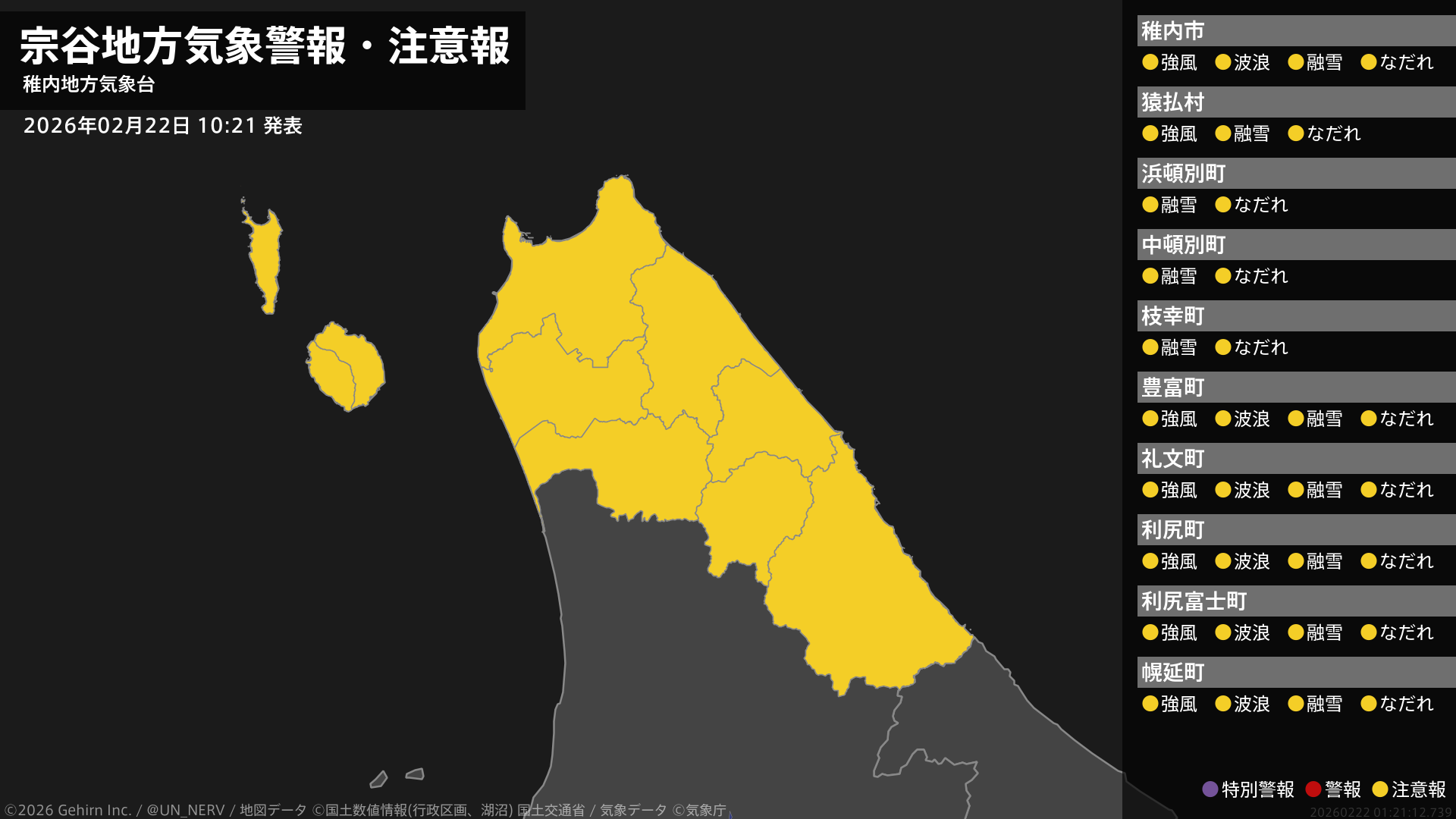 【宗谷地方 気象警報・注意報 2026年02月22日 10:21】