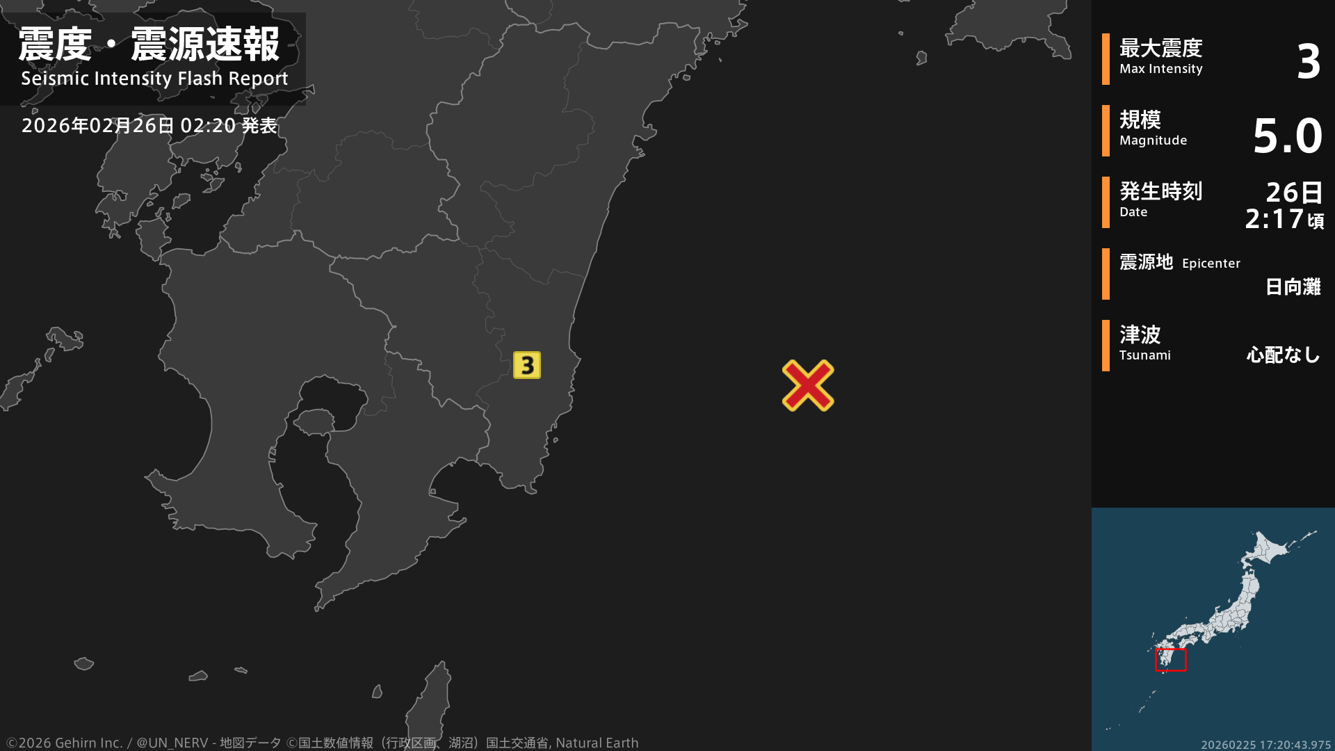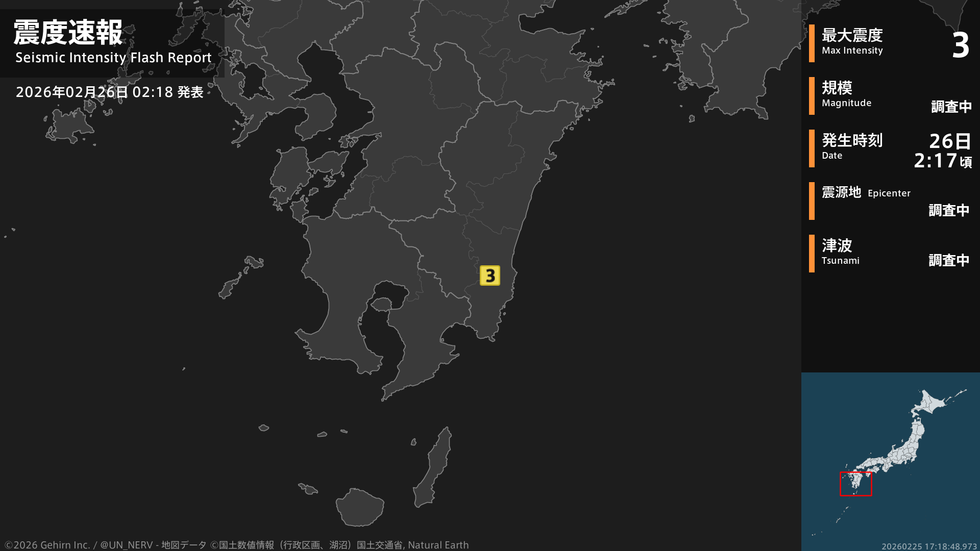 【緊急地震速報 第3報 2026年2月26日】