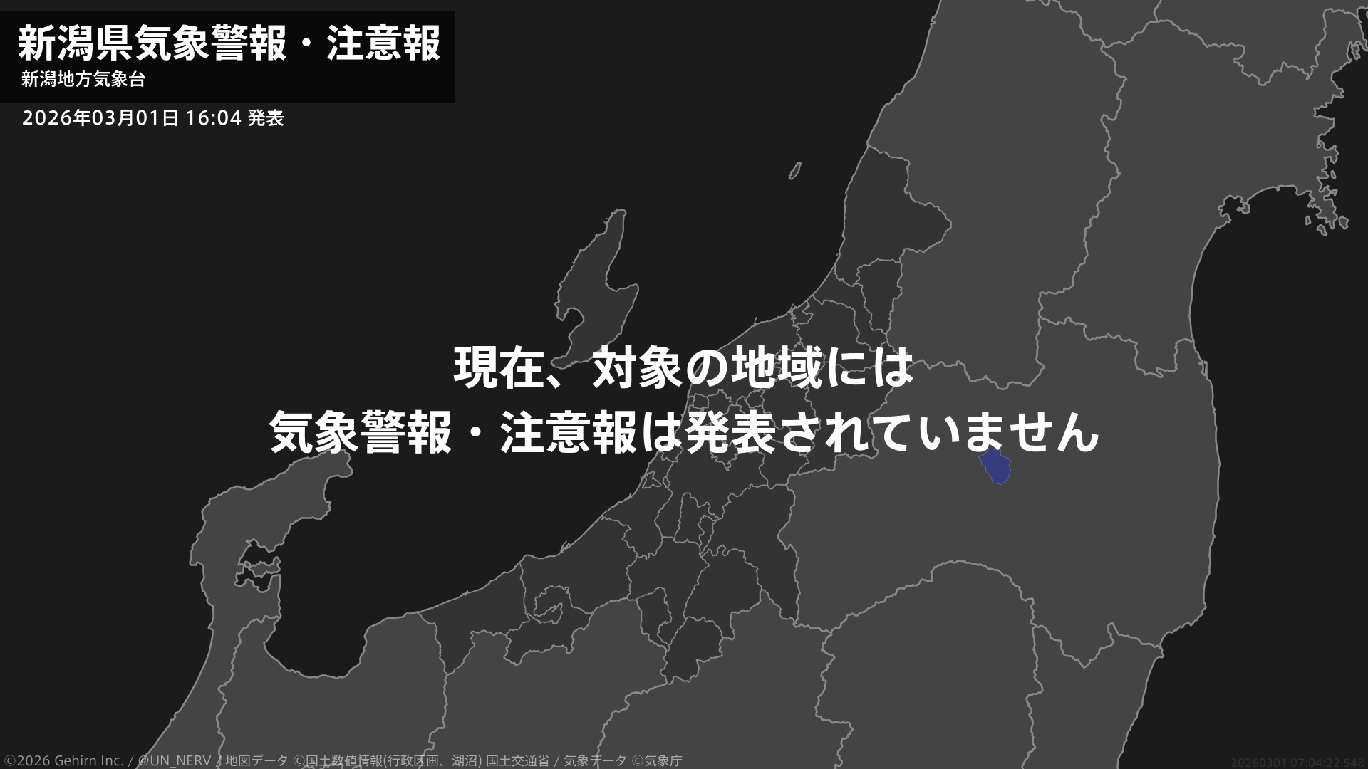 【新潟県 気象警報・注意報 2026年03月01日 16:04】