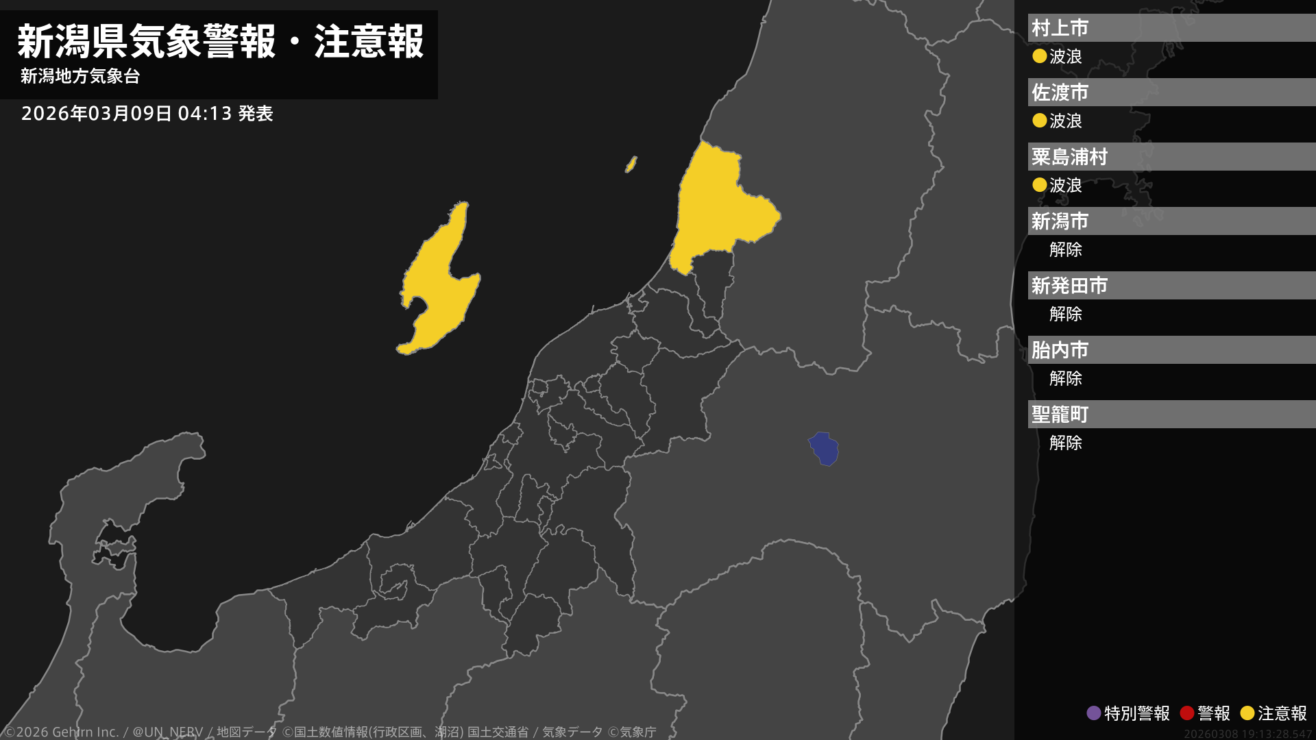 【新潟県 気象警報・注意報 2026年03月09日 04:13】
