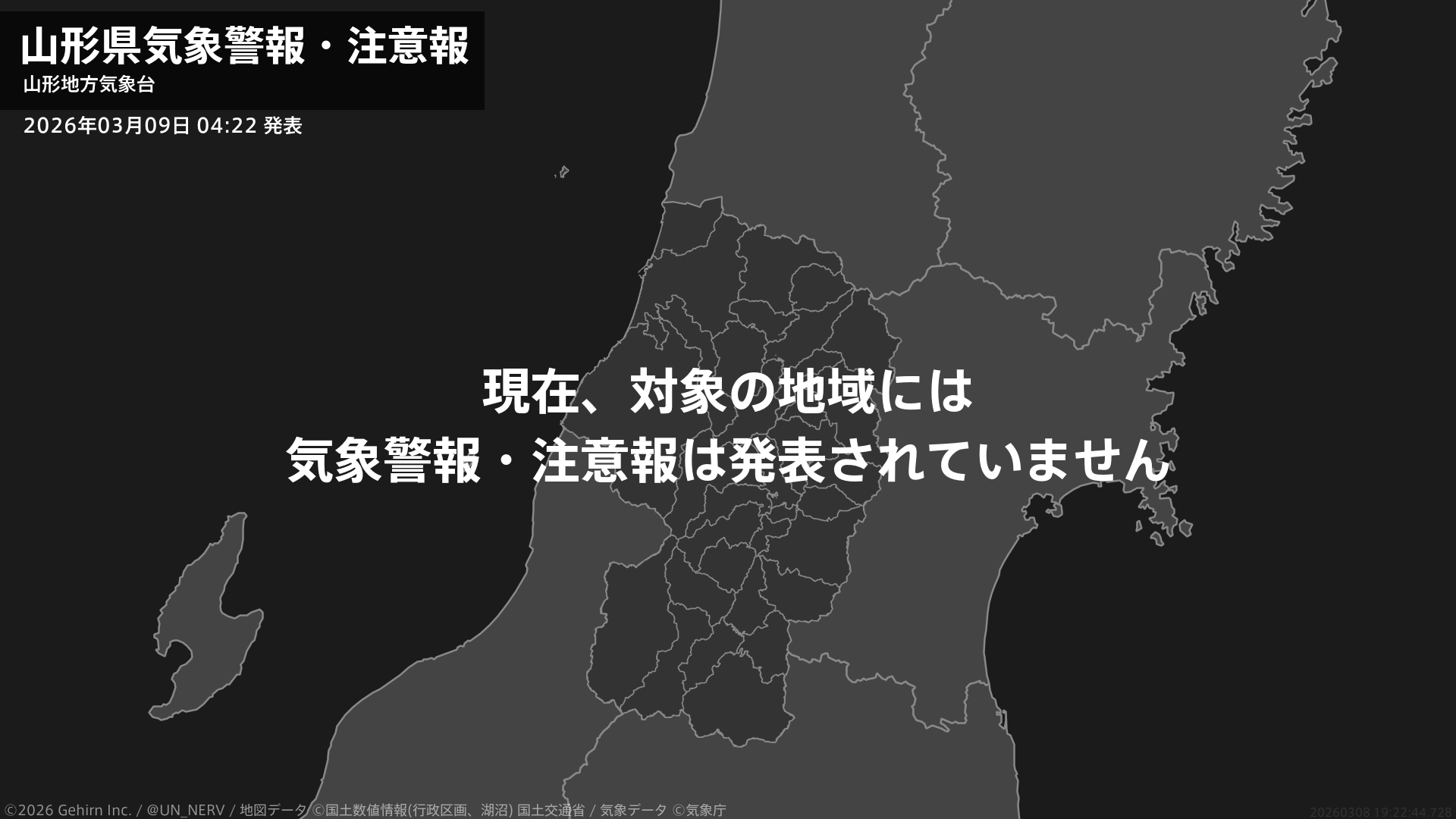 【山形県 気象警報・注意報 2026年03月09日 04:22】