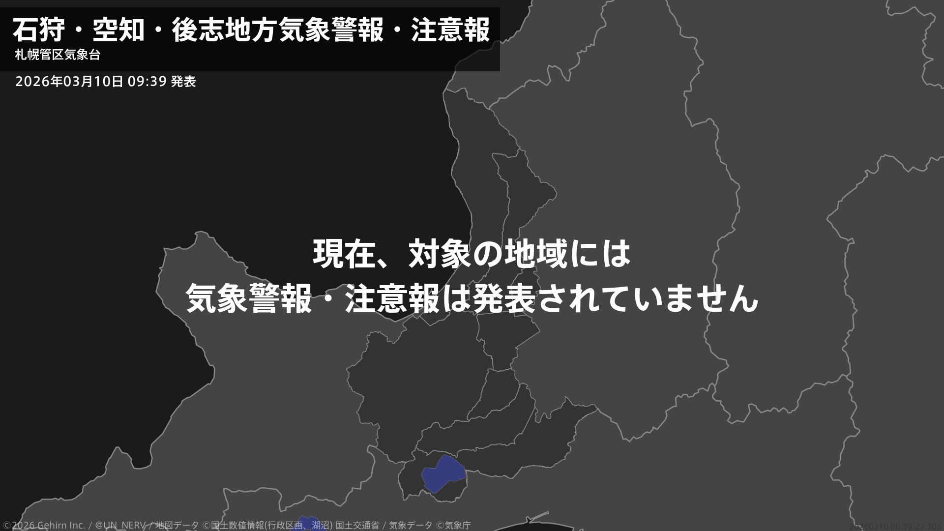 【石狩・空知・後志地方 気象警報・注意報 2026年03月10日 09:39】注意報を解除します。#気象警報注意報 #石狩地方