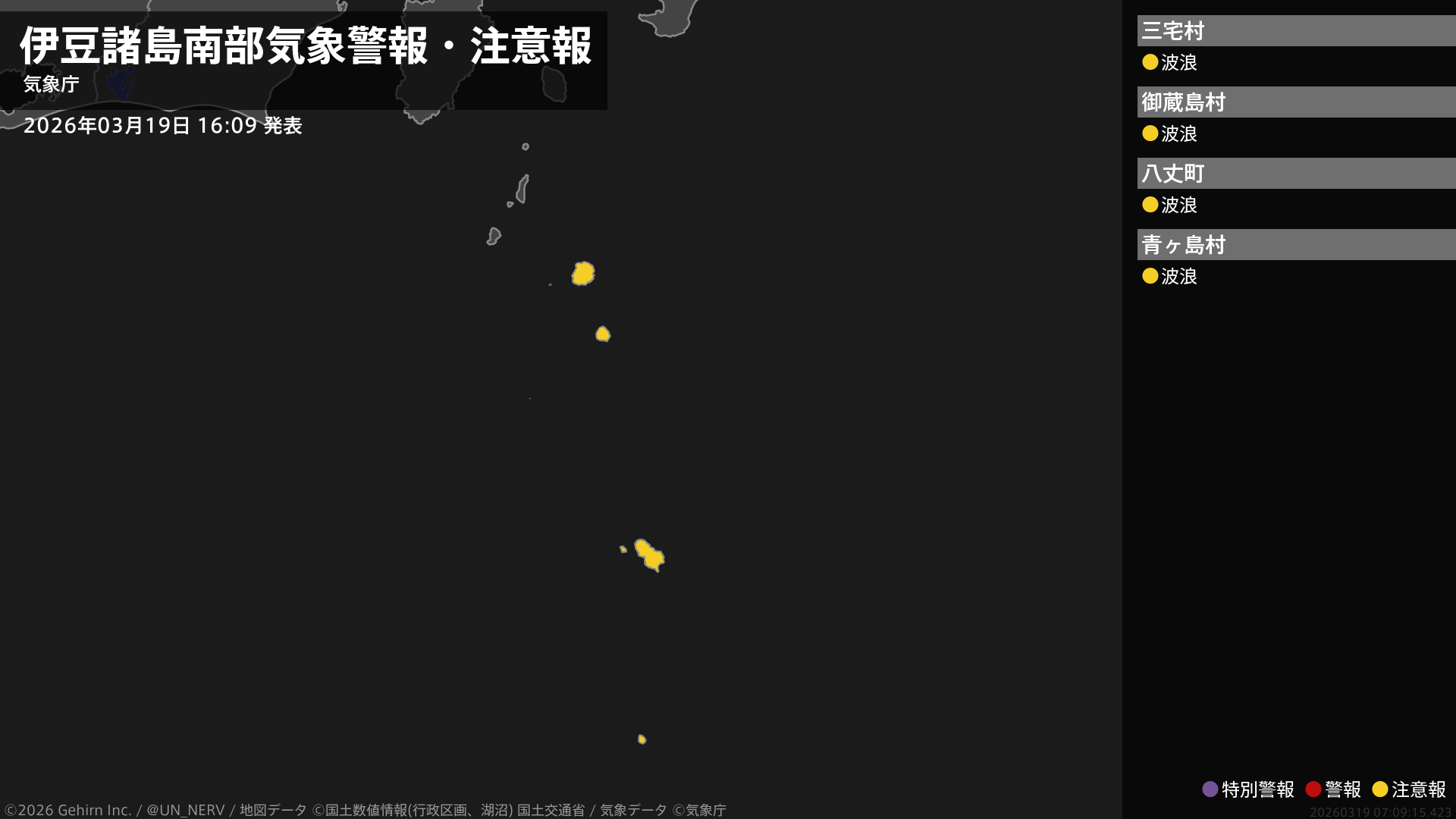 【東京都 気象警報・注意報 2026年03月19日 16:09】