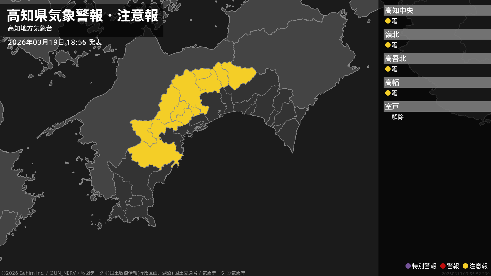 【高知県 気象警報・注意報 2026年03月19日 18:55】