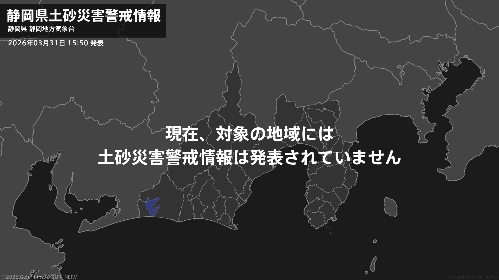 【静岡県 土砂災害警戒情報 2026年03月31日 15:50】静岡県に発表されていた土砂災害警戒情報はすべて解除されました。#土砂災害警戒情報 #静岡県