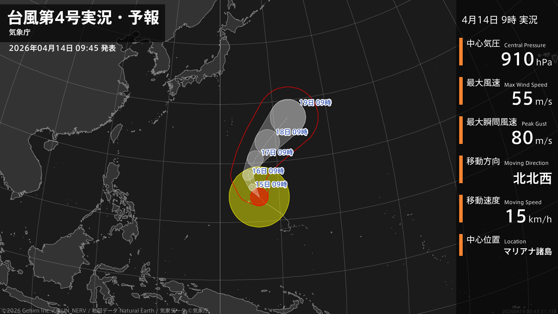 【台風第4号実況・予報 2026年04月14日 09:43】