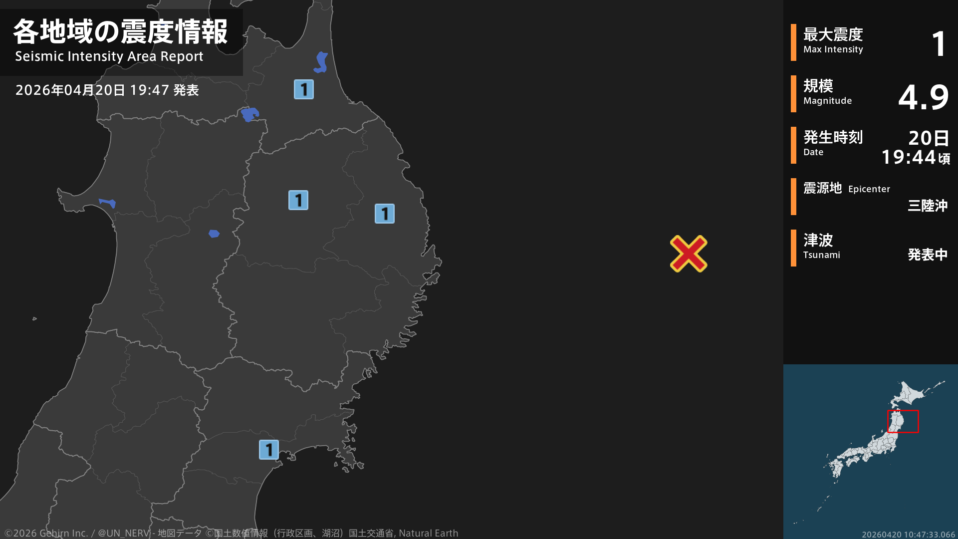 1/2【津波情報 2026年04月20日 20:15】