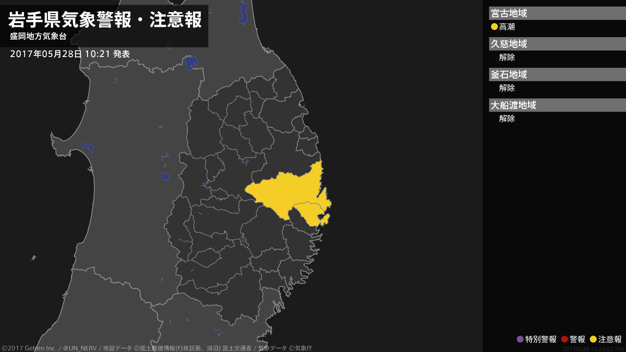 【宮城県 気象警報・注意報 2017年05月28日 10:13】注意報を解除します。#気象警報注意報 #宮城県