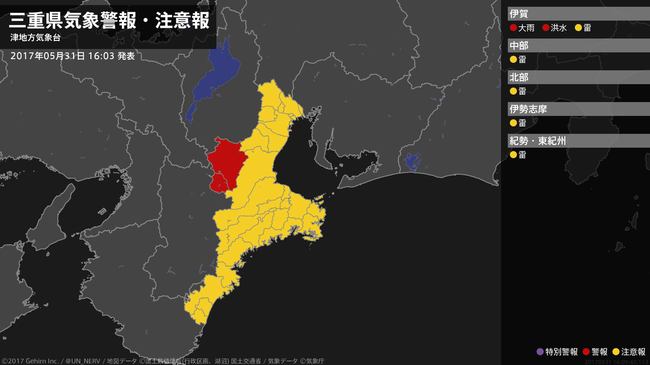 【三重県 気象警報・注意報 2017年05月31日 16:05】