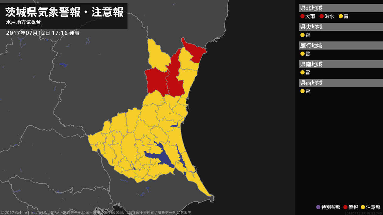 【茨城県 記録的短時間大雨情報 2017年07月12日 17:23】